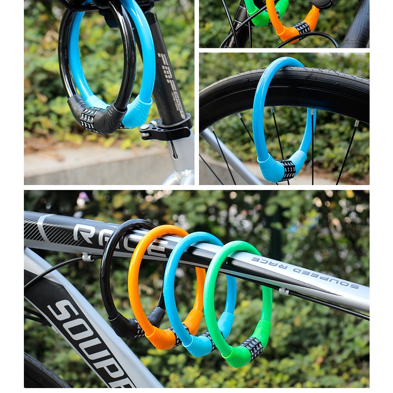 - Đặc điểm kỹ thuật: Khóa xe đạp kết hợp 4 số an toàn chống trộm dạng dây cáp
