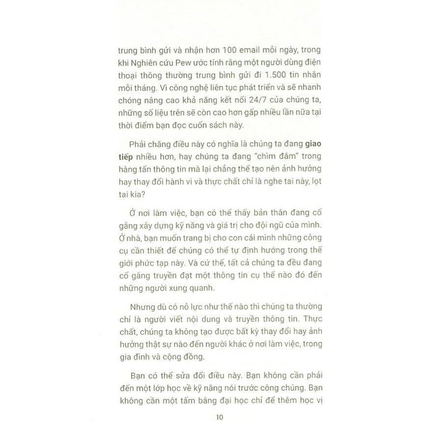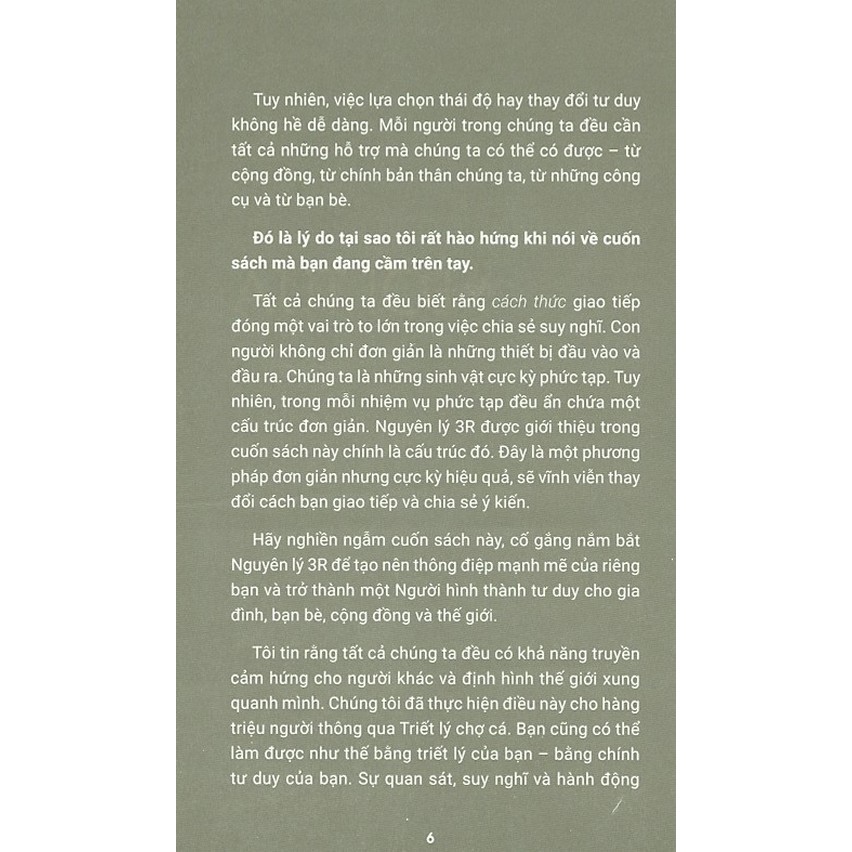Mua tại TiktokKhơi Nguồn Năng Lực - Truyền Cảm Hứng Tất cả chúng ta đều có những thông điệp quan trọng cần truyền đạt. Nhưng hầu hết mọi người lại không biết làm thế nào để giao tiếp hiệu quả và tạo nên một tác động bền vững. Cuốn sách này trình bày Nguyên lý 3R – gồm ba (và nhiều) bước đơn giản, thiết thực để làm cho thông điệp trở nên đáng nhớ và có sức ảnh hưởng lâu dài. Kết hợp một câu chuyện hư cấu sáng tạo, những lời giải thích dựa trên khoa học và cuộc sống, những ví dụ thực tế từ chính kinh nghiệm của các tác giả, cuốn sách mới lạ và hấp dẫn này sẽ thay đổi suy nghĩ và hành vi của bạn. Đây là một cẩm nang hữu ích và dễ áp dụng cho bất kỳ ai muốn truyền đạt thông điệp, tạo ảnh hưởng và phát triển tư duy.
