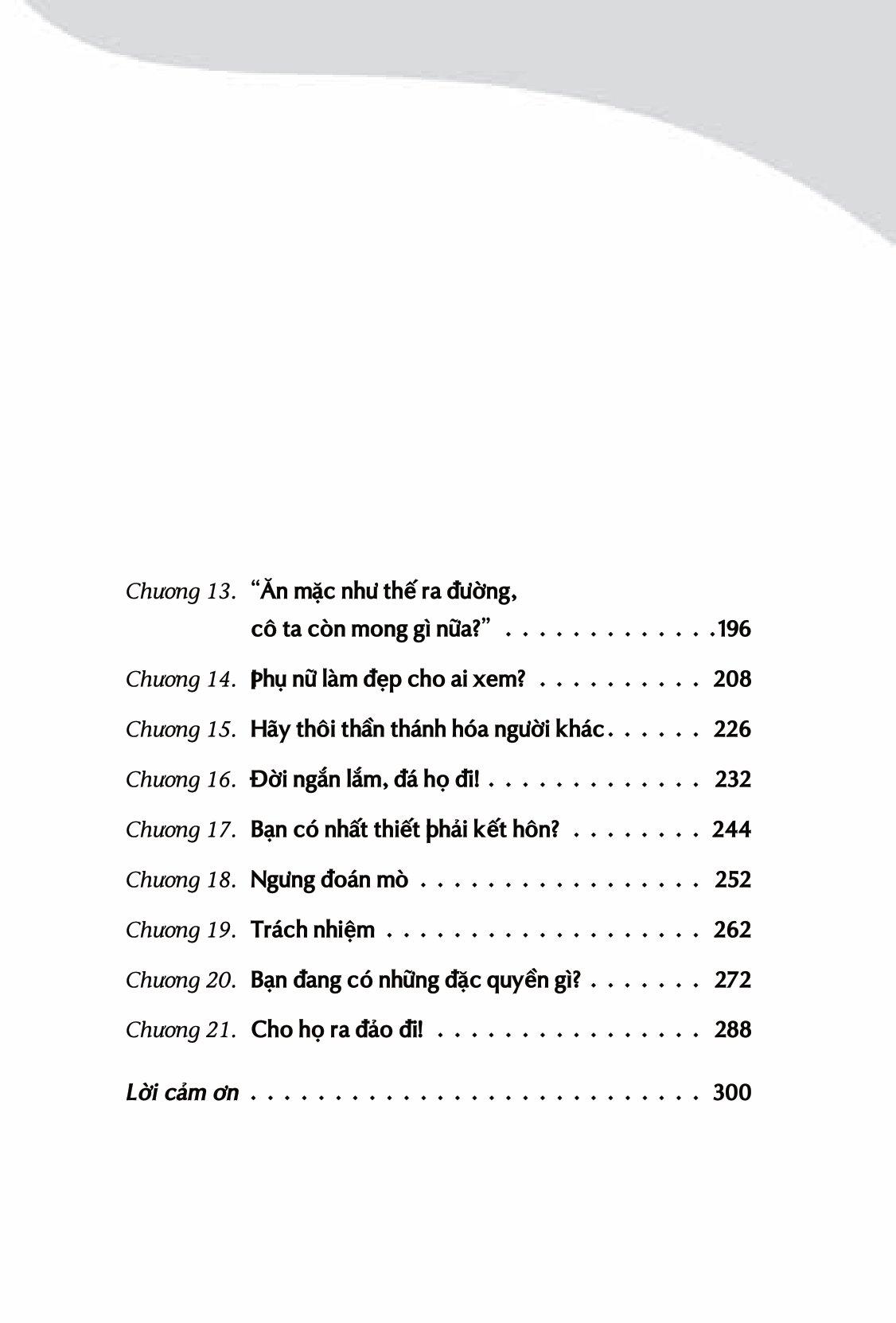 Không Ai Nợ Bạn Sự Xinh Đẹp Phụ nữ không nợ ai sự xinh đẹp Sẽ thật tuyệt nếu phụ nữ cảm thấy họ không cần dùng đến những phương pháp làm đẹp quá khắc nghiệt để cơ thể “đủ sức thu hút”, và có thể để mặt mộc đi làm mà không bị nhận xét rằng “trông mặt tối tối”. Nhưng người ta vẫn luôn trông đợi rằng phụ nữ thì phải xinh đẹp và đáng them muốn, và mức độ trông đợi sẽ khác nhau tùy thuộc vào vị trí mà người phụ nữ ấy đã nắm giữ trong hệ thống phân cấp độ hấp dẫn mà xã hội tạo ra. Chúng ta không thể ép người khác cảm thấy xấu hổ vì đã sử dụng một vài công cụ để làm đẹp, nhất là khi họ chỉ muốn cuộc sống của m.ình dễ dàng hơn và nhận được sự tôn trọng cơ bản dành cho con người, cho dù đó là cọ trang điểm hay dao cạo. Tại sao bạn lại muốn họ phải chịu khổ sở thêm nữa dưới cái lốt “tinh thần nữ quyền ưu việt”, khi họ chỉ đang cố gắng để tồn tại? Chúng ta không thể bắt người khác phải xấu hổ vì đã làm đúng theo những gì xã hội đã luôn trông đợi họ làm để được nhìn thấy và lắng nghe trong cái thế giới hỗn độn này. Kỳ vọng về sự nữ tính có sự khác biệt ở những đối tượng khác nhau. Những người bị coi thường như người chuyển giới nữ, người thừa cân và người da màu không phải lúc nào cũng có đặc quyền “từ chối các tiêu chuẩn sắc đẹp” như để lông nách mọc tự nhiên hoặc thậm chí là để tóc mọc tự nhiên. Việc họ tồn tại trên thế giới này bị coi là “khó ưa” và họ đã bị đối xử kém hơn, trong khi họ không hề chủ động đi ngược lại các chuẩn mực về giới. Đời ngắn lắm, còn chờ gì mà không yêu lấy bản thân Cuốn sách Không Ai Nợ Bạn Sự Xinh Đẹp mang đến thông điệp yêu lấy bản thân. Nếu tình yêu ấy đủ nhiều và đủ lớn để có thể lấp đầy bạn, bạn sẽ cảm nhận được giá trị của chính m.ình mà không cần bất kỳ mối quan hệ yêu đương nào cả. Thông qua câu chuyện của bản thân, Florence Given sẽ đưa bạn vào một cuộc hành trình suy xét lại tất cả những gì thuộc về m.ình và tự hỏi tại sao bạn lại phải tuân theo những quy ước làm đẹp quá đáng, tốn tiền, tốn thời gian và đôi khi vô cùng đau đớn. Trong Women Don’t Owe You Pretty, Florence Given cho rằng bản thân mỗi người không có nghĩa vụ phải làm hài lòng người khác, đặc biệt là những người phụ nữ vốn được dạy rằng m.ình phải ngoan, hoàn hảo, nhỏ nhắn hay xinh xắn, cô cho rằng phiên bản tốt nhất của bạn không phải là phiên bản bị cắt xén để vừa khớp với chỗ dành cho phụ nữ trong thế giới của đàn ông, mà phiên bản toàn vẹn của một người phụ nữ đó chính là bất chấp tất cả phản ứng của người khác, bất kể rằng phiên bản ấy có chỗ trong thế giới đàn ông hay không.