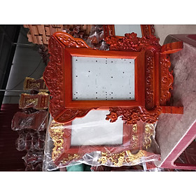 _ Khung ảnh thờ được làm bằng chất liệu gỗ hương tự nhiên 100% _ Kích thước khung viền ngang 50 cao 68sâu 17cm .Khung ảnh đã được lồng kính và có cả tấm ván