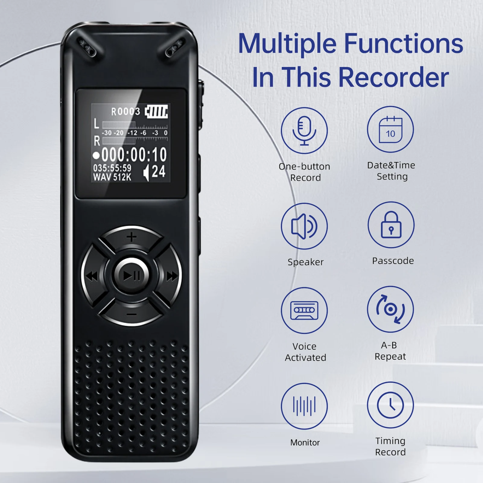 Máy ghi âm kỹ thuật số đơn giản đầy phong cách này có thể được mang đi bất cứ đâu để ghi lại âm thanh trong các bài giảng, cuộc họp, cuộc trò chuyện và