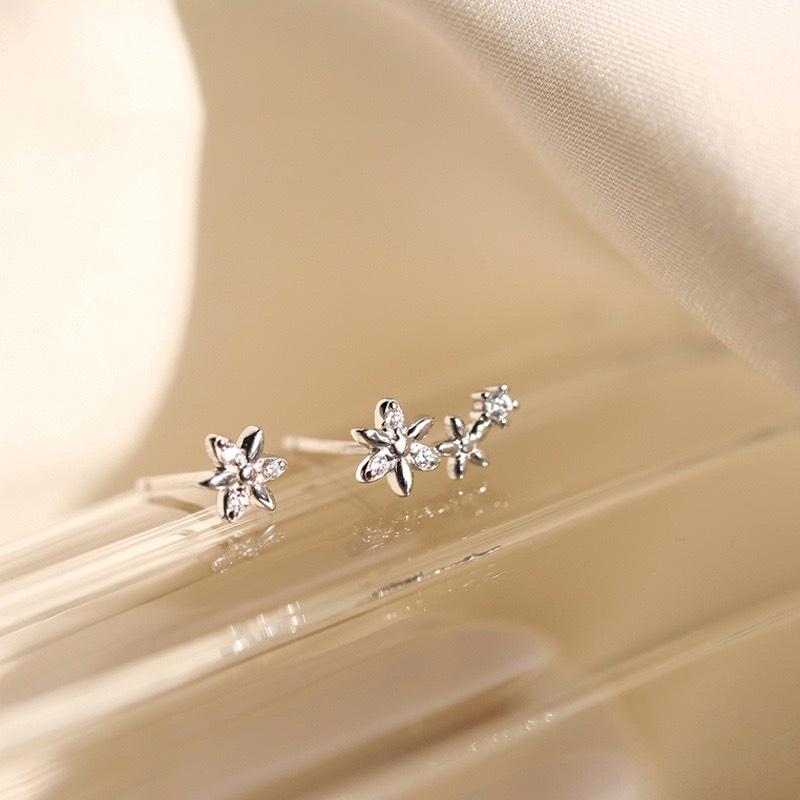Khuyên tai bạc 925 nụ cọc cạch 1 bên 3 hoa 1 bên 1 hoa xinh xắn độc lạ Dế Bạc - K5840