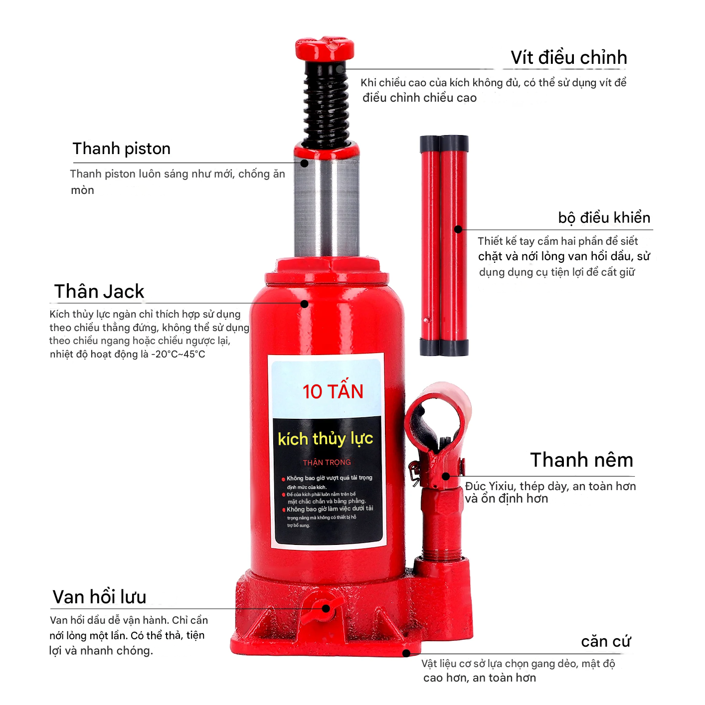 Mua tại Tiktok️Lưu ý: dòng kích này chỉ làm việc tư thế thẳng đứng từ dưới lên (không được lộn ngược, không quay ngang) Mô tả sản phẩm: Kích thủy lực gắn xe tải 5 tấn là thiết bị nâng hạ chuyên dụng được lắp cố định dưới khung gầm xe tải. Sản phẩm được thiết kế chắc chắn, vận hành mạnh mẽ bằng cơ cấu thủy lực, giúp nâng toàn bộ phần thân xe lên dễ dàng để kiểm tra, sửa chữa hoặc thay lốp. Đặc điểm nổi bật: