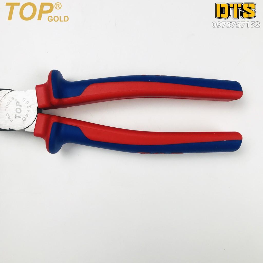 Kìm điện trợ lực chuyên nghiệp TOP GOLD 200mm, thép Hi-Cr thiết kế cộng lực tiết kiệm 50% lực bấm