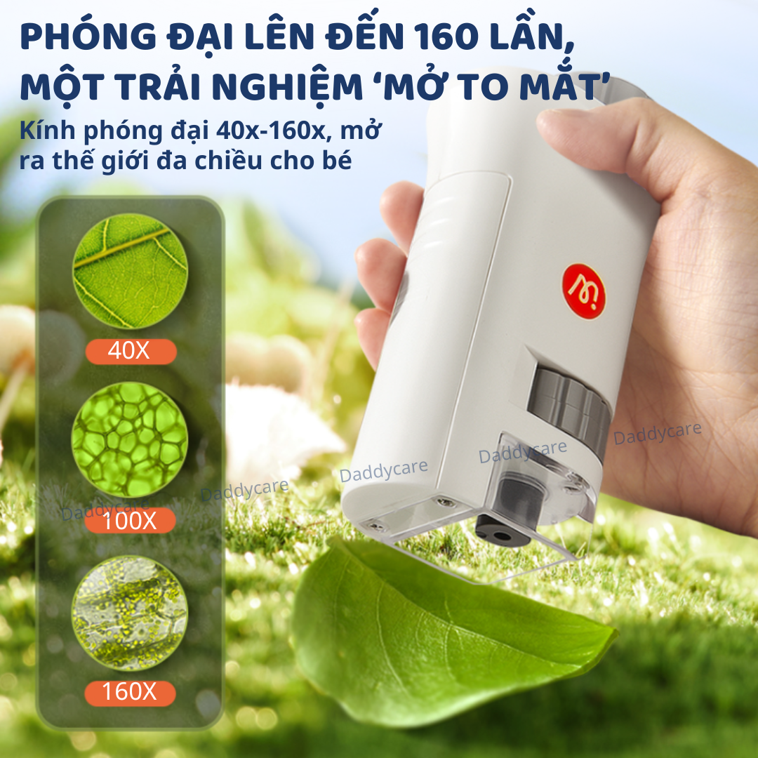 - PHÓNG ĐẠI 160 LẦN: Với độ phóng đại từ 40x đến 160x, kính hiển vi giúp trẻ khám phá thế giới vi mô một cách chi tiết và sinh động.