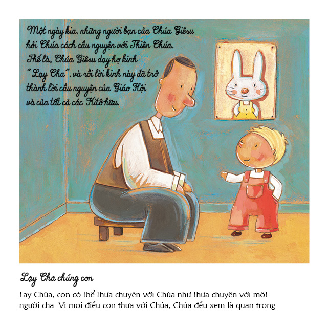 Tập truyện bé nhỏ đầy màu sắc này minh hoạ hai kinh quen thuộc của người Kitô hữu giúp bé nói với Đức Maria như nói với mẹ, chị hay bạn mình và nói với Thiên Chúa như nói với cha mình....