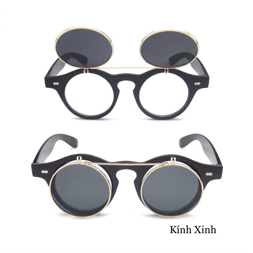 Mua tại TiktokKính Râm/Kính Mát 2 Tròng Mở Nắp Dáng Tròn Retro Đi Ngày Và Đêm Tiện Lợi Kính mắt thiết kế đa năng tiện lợi, phù hợp đeo đi cả Ngày và Đêm để bảo vệ mắt. Tròng kính có tác dụng chống nắng, chống lóa Uv. Thiết kế gọng dáng mắt tròn năng động, dễ đeo cho mọi dáng khuôn mặt. Dáng mắt tròn unisex phù hợp cho cả nam và nữ. Bộ sản phẩm gồm : 1 kính mắt tròn tròng trắng + mắt tròn tròng râm đen lật bên ngoài.