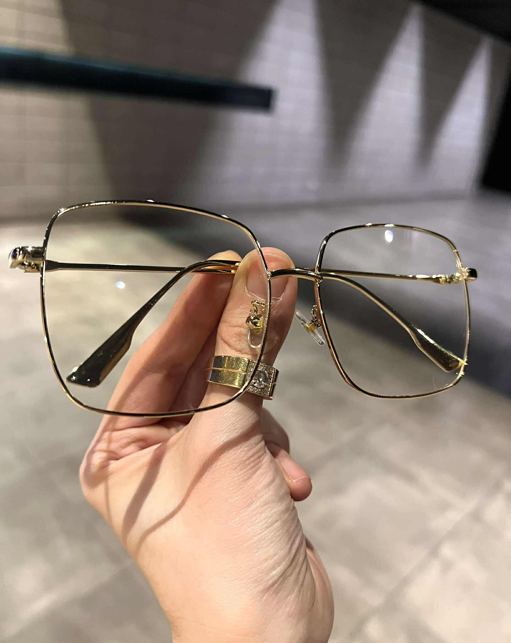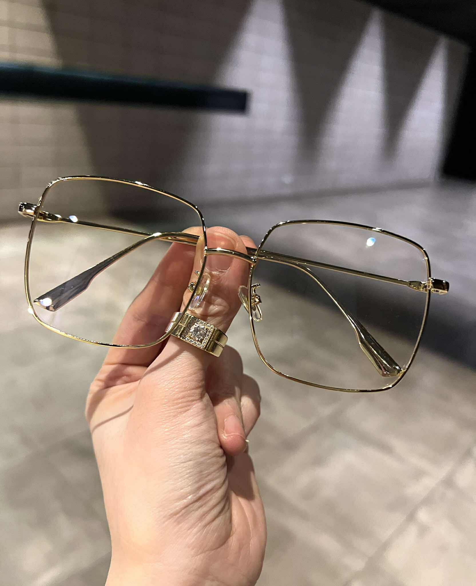 Kính mắt thời trang cao cấp Hàn Quốc Mắt kính chống ánh sáng xanh cho nam nữ - Giới tính: Nam và Nữ - Kiểu dáng: Vuông to oversize - Chất liệu: Kim loại -