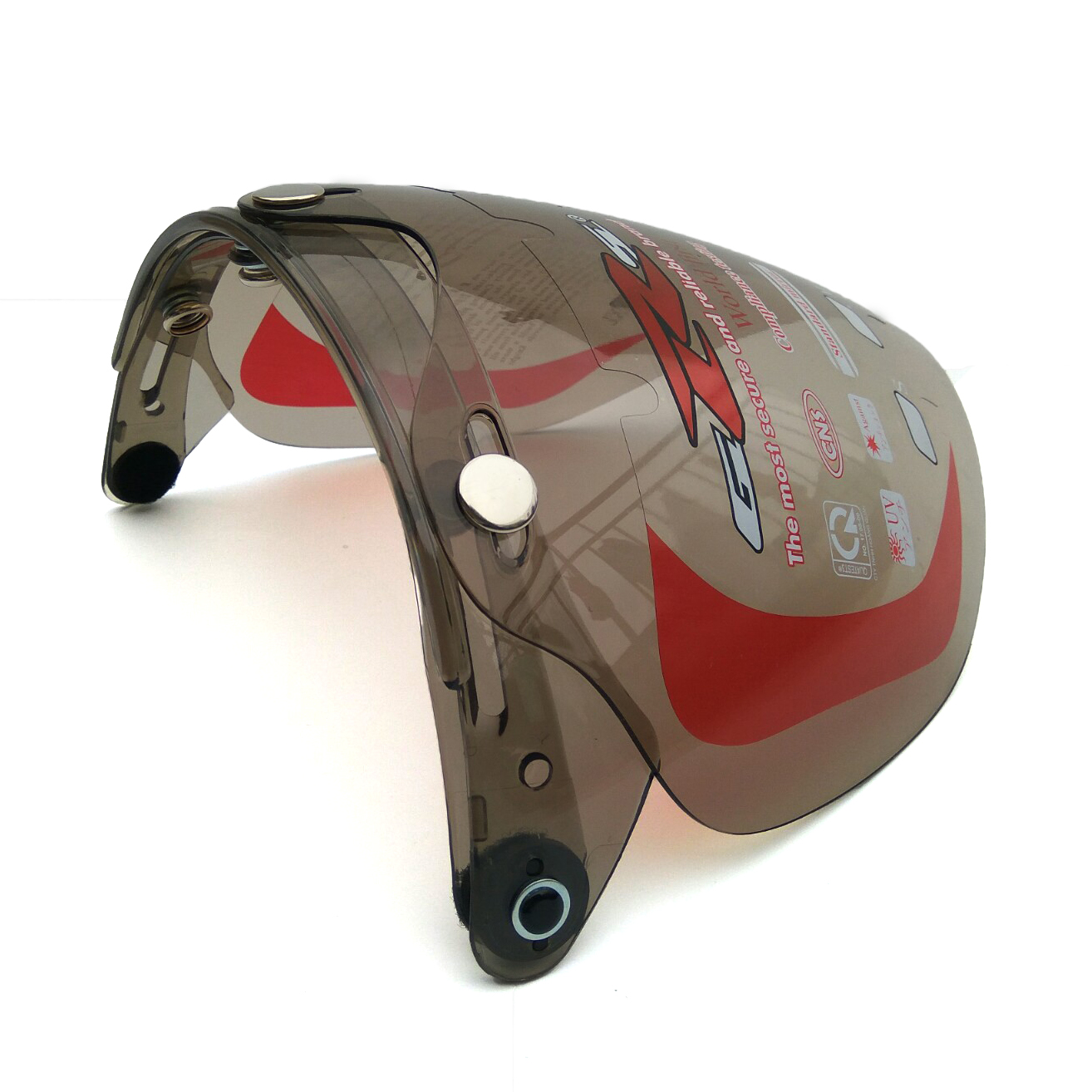 - Kính thẳng có 3 nút đồng gắn nón bảo hiểm - Có thể kéo mở lên xuống - Gắn chắc với các dòng nón Royal, Asia, Bulldog, Andes - Mặt kính đồng nhất, tầm
