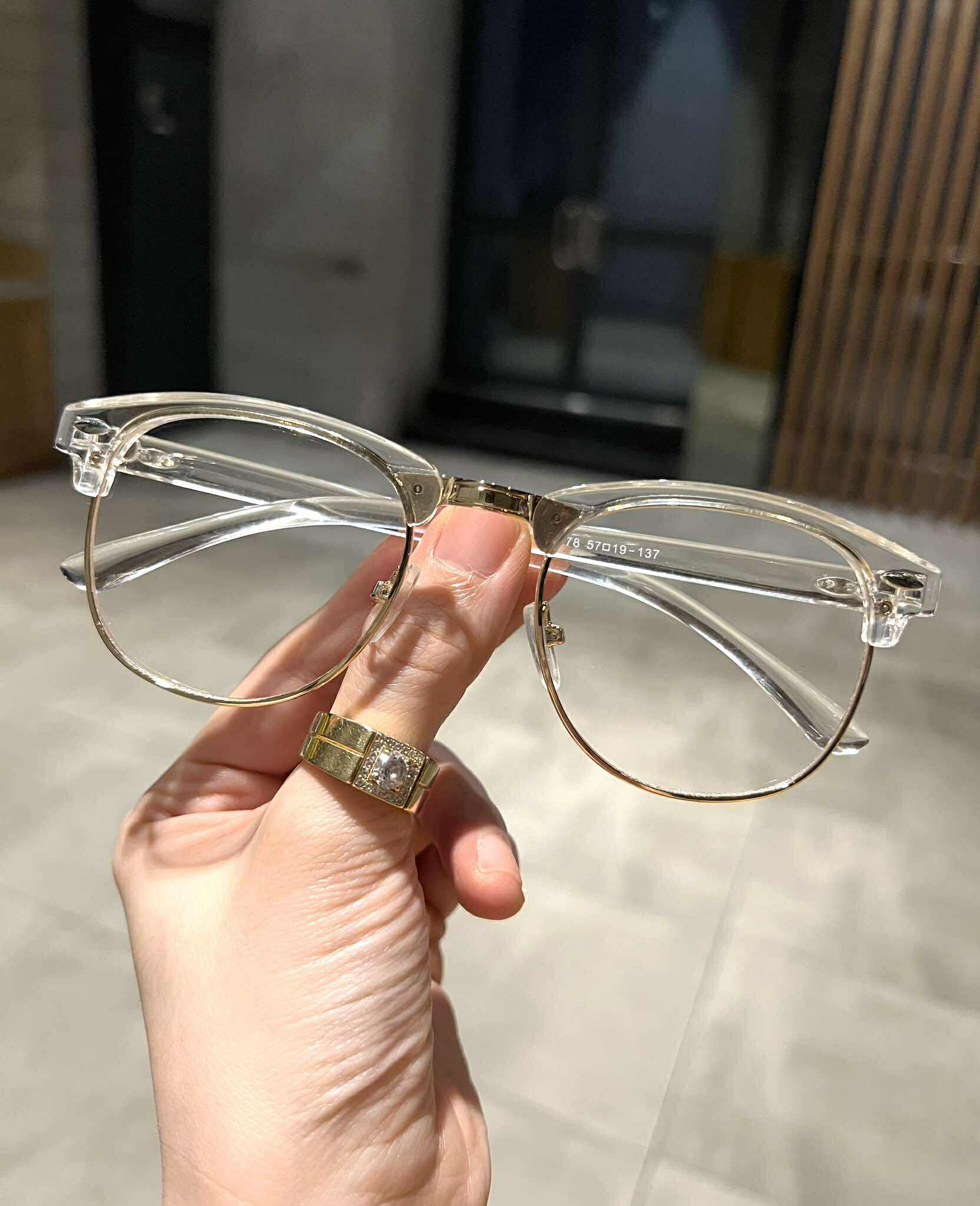 Kính Trong suốt dáng Club nửa viền unisex cho nam nữ - Giới tính: Nam và Nữ - Kiểu dáng: Freeform - Chất liệu: Nhựa - Tặng hộp đựng và khăn lau kèm theo -