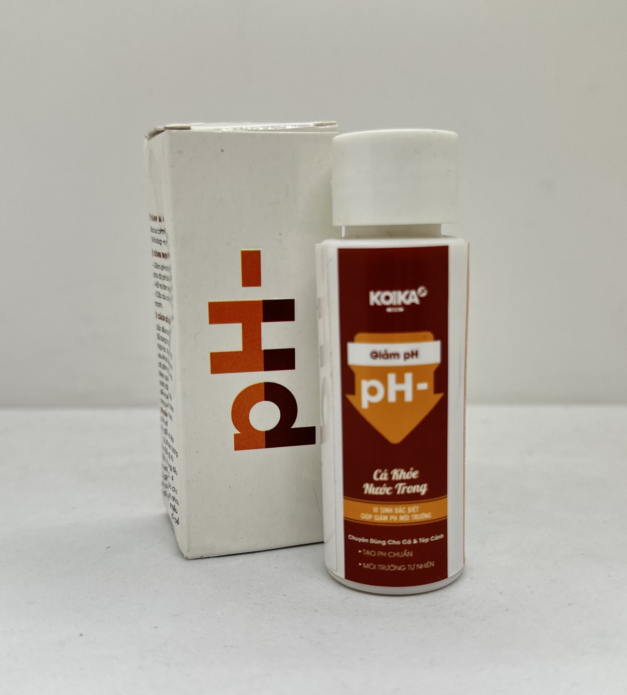 KOIKA pH- VI SINH ĐẶC BIỆT GIÚP GIẢM PH MÔI TRƯỜNG CHUYÊN DÙNG CHO CÁ VÀ TÉP CẢNH  Công Dụng:  Giảm pH một cách tự nhiên và giữ cho độ pH bền vững.   Hỗ trợ làm trong nước.  * Cấp cứu cá khi pH đột ngột tăng mạnh.  Đo pH trước khi sử dụng và sau sử dụng 10 phút để kiểm tra độ tăng pH. Mẹo: quý khách sục khí mạnh cho nước bão hòa pH thì việc điều chỉnh diễn ra sẽ bền vững hơn, tránh tình trạng pH trở lại như cũ. Khuyến cáo: Vì nhiều loài cá và tép cảnh vô cùng nhạy cảm với hiện tượng thay đổi pH đột ngột với biên độ từ 1 - 1,5; do vậy, quý khách vui lòng điều chỉnh 0.5 - 1 độ pH trong vòng 2 - 4 giờ/lần. pH sẽ bền vững đến mức cho phép sau 2 - 3 nhịp sử dụng cách nhau 8 - 12 giờ. Đối với cá bột vui lòng điều chỉnh pH ở bể trữ trước khi cấp vào bể nuôi để tránh hiện tượng sốc pH. Lưu ý: Không để sản phẩm tiếp xúc với mắt, nếu sản phẩm dính vào mắt, rửa ngay dưới vòi nước chảy nhẹ, sau đó nhỏ mắt với nước muối sinh lý. Gặp bác sĩ nếu mắt bị kích ứng. Rửa tay ngay nếu tiếp xúc trực tiếp với sản phẩm.  Thể tích : 30ml/chai