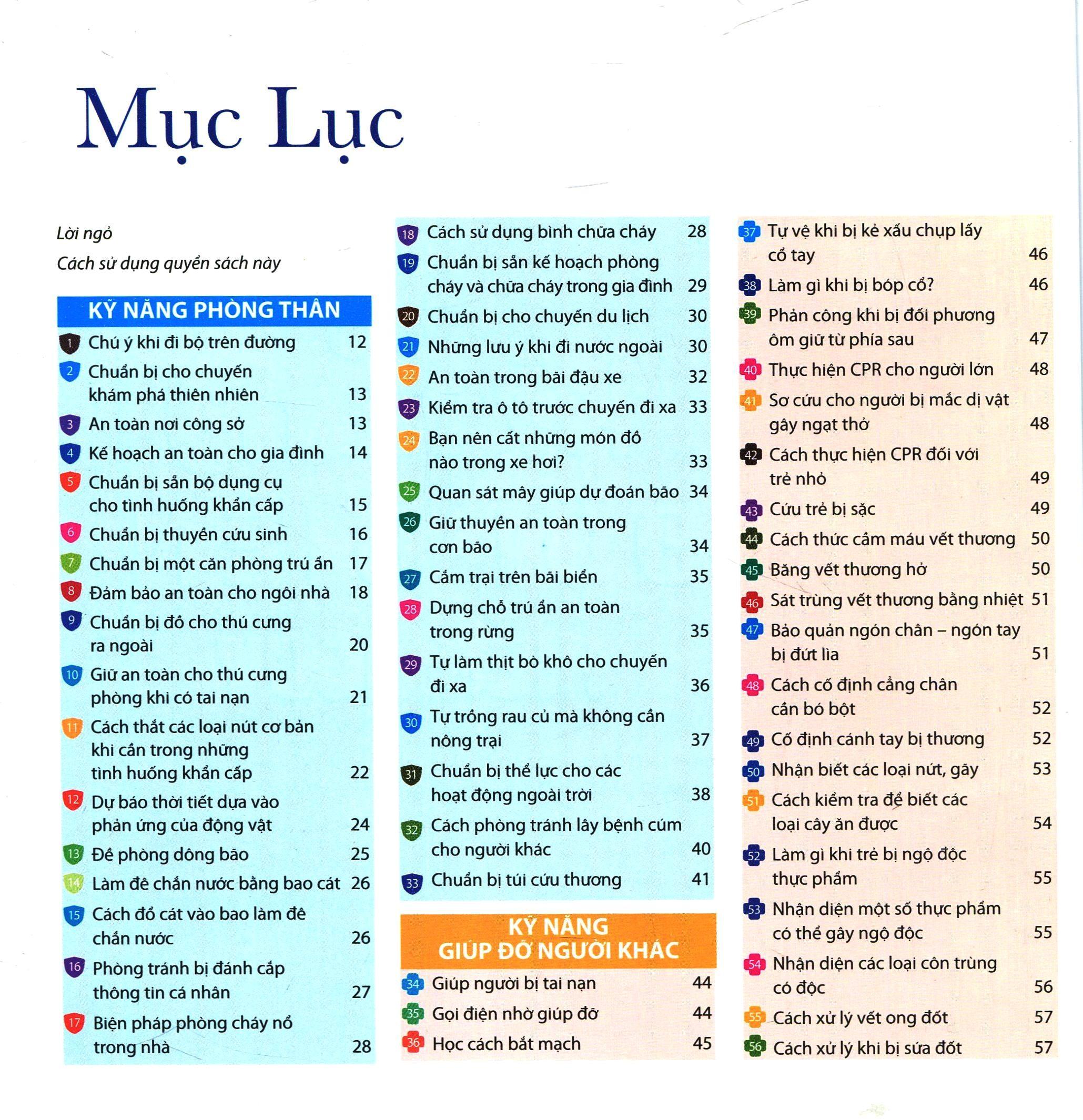 Nếu bạn đang cần tìm một quyển cẩm nang hướng dẫn đầy đủ từ những kỹ năng sơ cứu đơn giản nhất đến những kiến thức cần thiết có thể cứu bạn trong tình huống hiểm nguy thì bạn đã tìm được rồi đấy. 131 kỹ năng được giới thiệu trong cuốn sách này sẽ giúp ích cho bạn trong đời sống hằng ngày và cả trong những chuyến đi xa, những cuộc phiêu lưu, những ngày "phượt" rong ruổi đến vùng đất lạ. Hãy đọc, nghiền ngẫm và thực hành từng kỹ năng nhé!