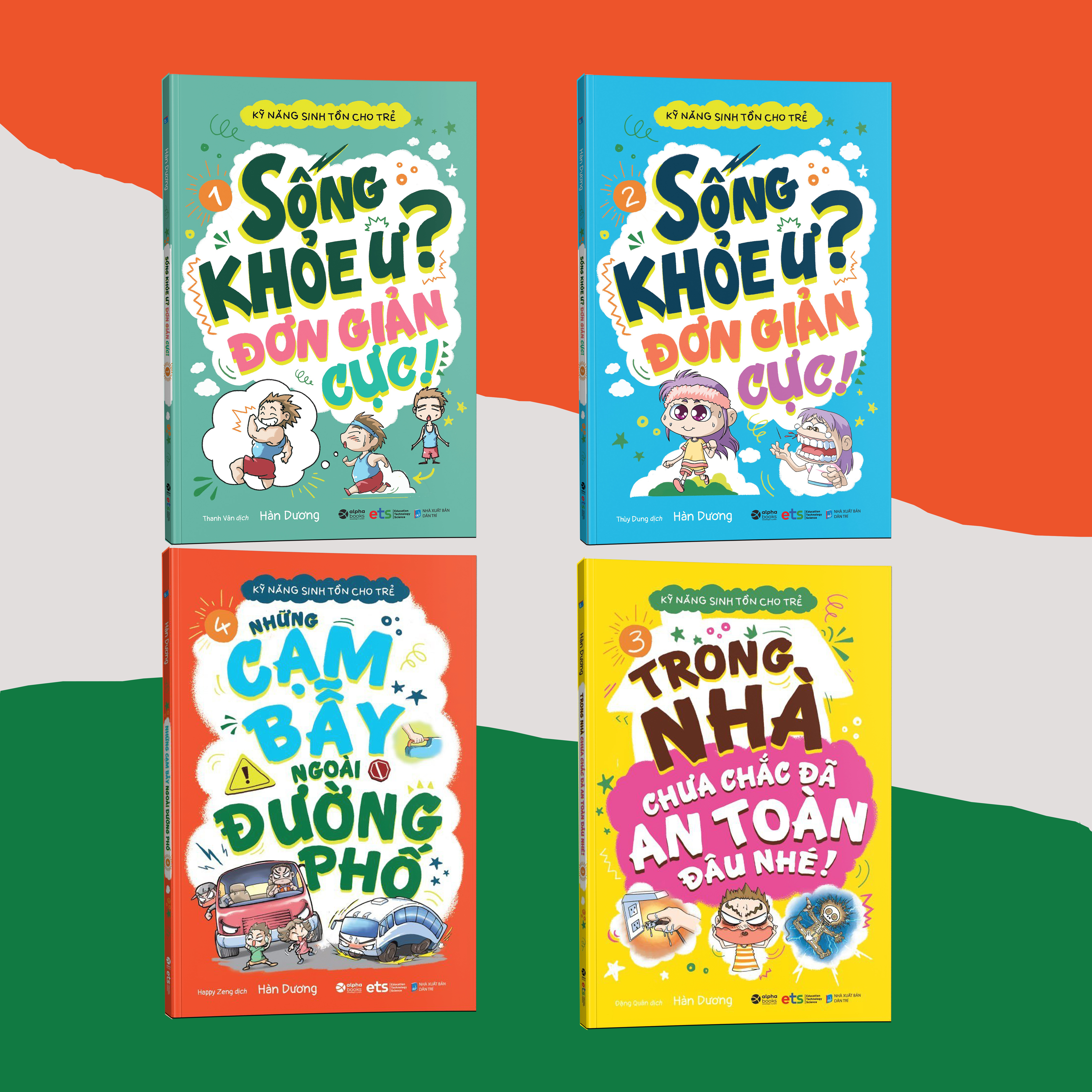 Bộ sách Kỹ năng sinh tồn cho trẻ (04 tập) đề cập đến tất cả những mối nguy hiểm tiềm ẩn có thể ảnh hưởng đến sự an toàn của trẻ nhỏ trong mọi khía cạnh của đời sống xã hội hiện đại ngày nay. Với rất nhiều những tình huống bất ngờ, khẩn cấp và nguy hiểm được miêu tả dưới hình thức tranh minh họa, bộ sách sẽ mang đến cho trẻ những kiến thức đúng đắn và phương thức phòng tránh hiệu quả nhất. Trẻ sẽ cảm thấy thoải mái và tiếp thu một cách vui vẻ hơn 100 biện pháp ứng phó cần lưu ý thực hiện trong bộ sách này, đồng thời có thể xây dựng cho mình ý thức tự bảo vệ, tâm lý bình tĩnh khi đối mặt với hiểm nguy, qua đó tự giải thoát một cách thành công.