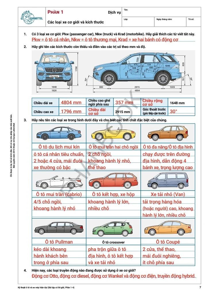 Mua tại TiktokĐây là quyển thứ nhất trong ba quyển "Kỹ thuật ô tô và xe máy hiện đại (Bài tập có lời giải)", được dùng bổ sung cho quyển "Chuyên ngành Kỹ thuật ô tô và xe máy hiện đại" của Tủ sách Nhất Nghệ Tinh đã được phát hành trước đây. Quyển sách này gồm sách bài tập cộng với phần lời giải in màu đỏ. Trong quyển thứ nhất này, 4 lĩnh vực học tập (được viết ngắn gọn trong sách là 4 phần) được đề cập đến gồm: