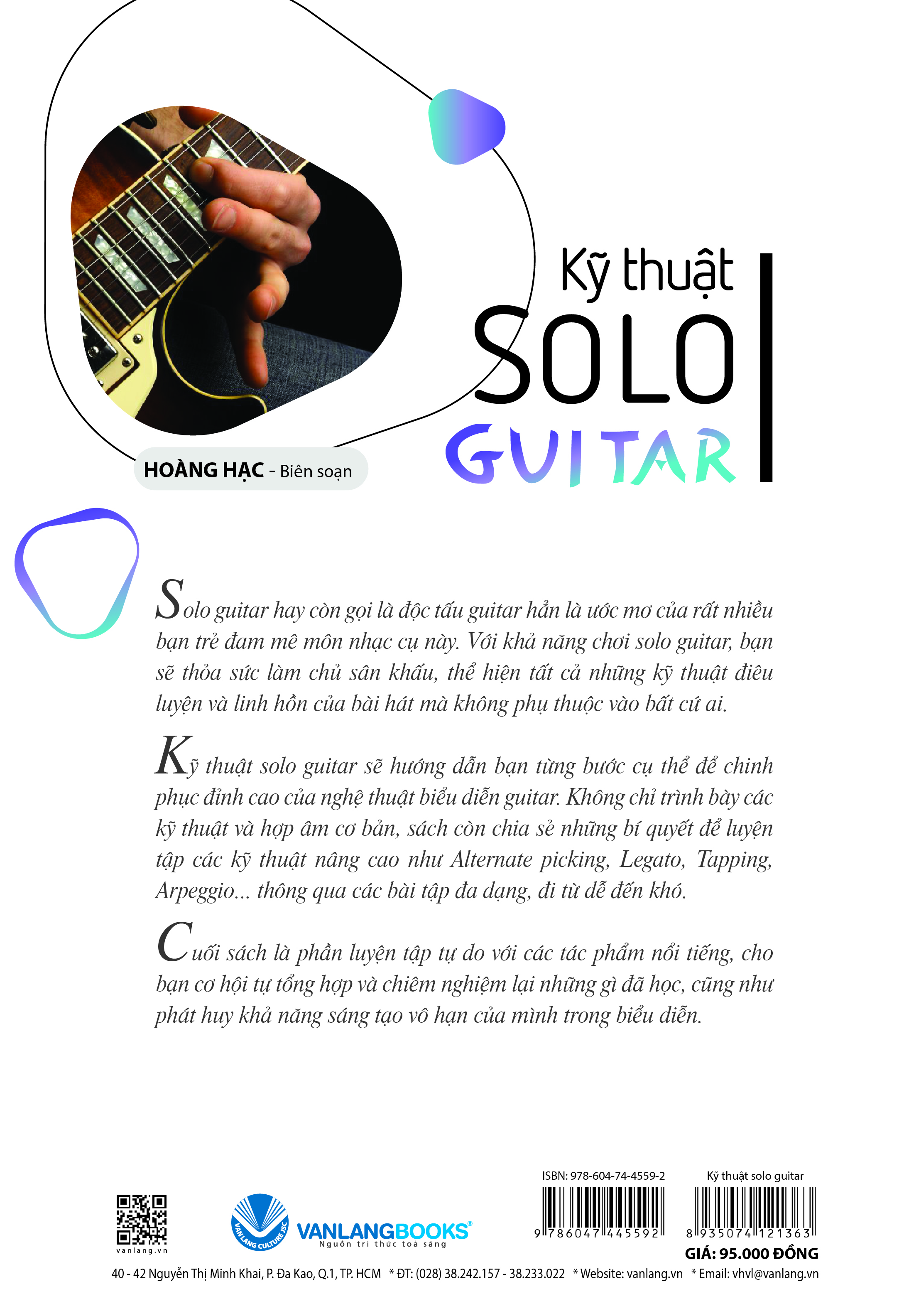 Kỹ thuật solo guitar sẽ hướng dẫn bạn từng bước cụ thể để chinh phục đỉnh cao của nghệ thuật biểu diễn guitar. Không chỉ trình bày các kỹ thuật và hợp âm cơ bản, sách còn chia sẻ những bí quyết để luyện tập các kỹ thuật nâng cao như Alternate picking, Legato, Tapping, A thông qua các bài tập đa dạng, đi từ dễ đến khó.