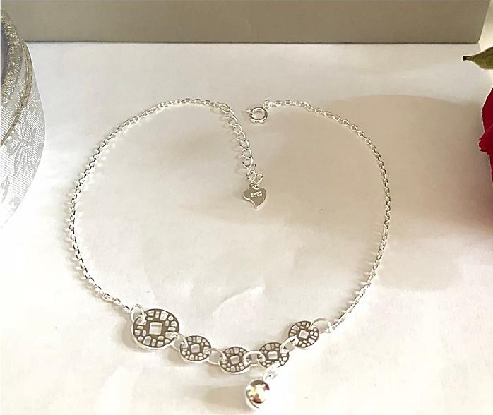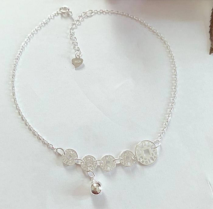 Sản phẩm được chế tác từ bạc cao cấp S925 vì vậy rất trang nhã, lịch sự và sáng bóng. Sản phẩm an toàn cho da khi sử dụng. Trọng lượng trung bình: 2.6 gram Thiết kế hình đồng tiền xu cổ kết hợp với chuông làm cho thiết kế vừa tinh tế và ý nghĩa, tiền xu cổ mang lại tài lộc cho chủ nhân. Theo phong thủy tiền xu là một trong những vật phẩm quan trọng. Ngày xưa, người ta dùng tiền xu đục lỗ hình tròn tượng trưng cho trời, giữa là lỗ hình vuông tượng trưng cho đất. Trời ngoài đất trong tượng trưng cho quẻ Thái tức sự thịnh vượng. Tùy theo niên hiệu các đời vua mà trên tiền xu có khắc chữ khác nhau Những đồng tiền xu là biểu tượng của nguồn tài lộc và của cải. Cát khí của nó không những làm gia tăng tài lộc mà con đem lại nhiều may mắn về công danh, sự nghiệp và giải trừ tai họa, tiểu nhân…