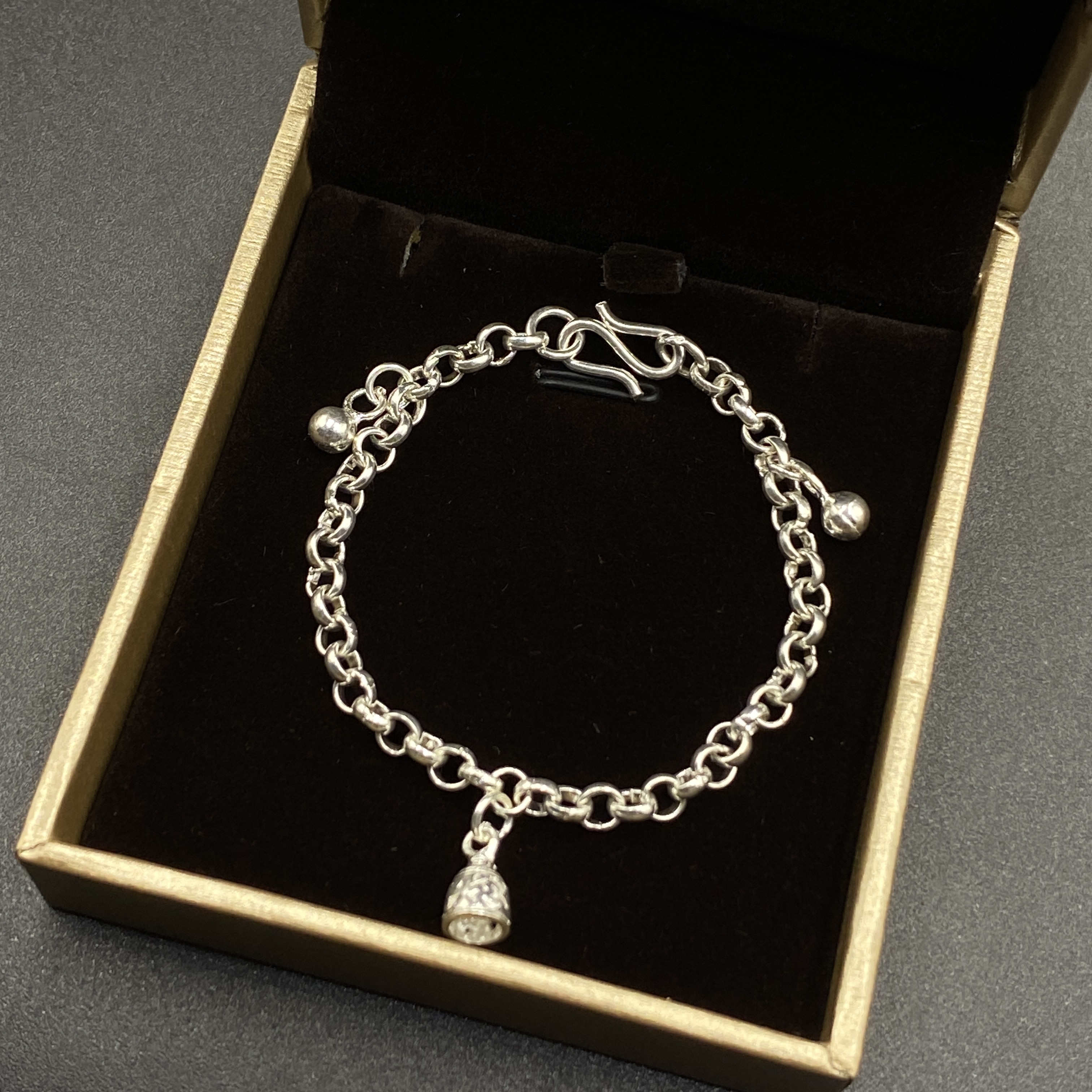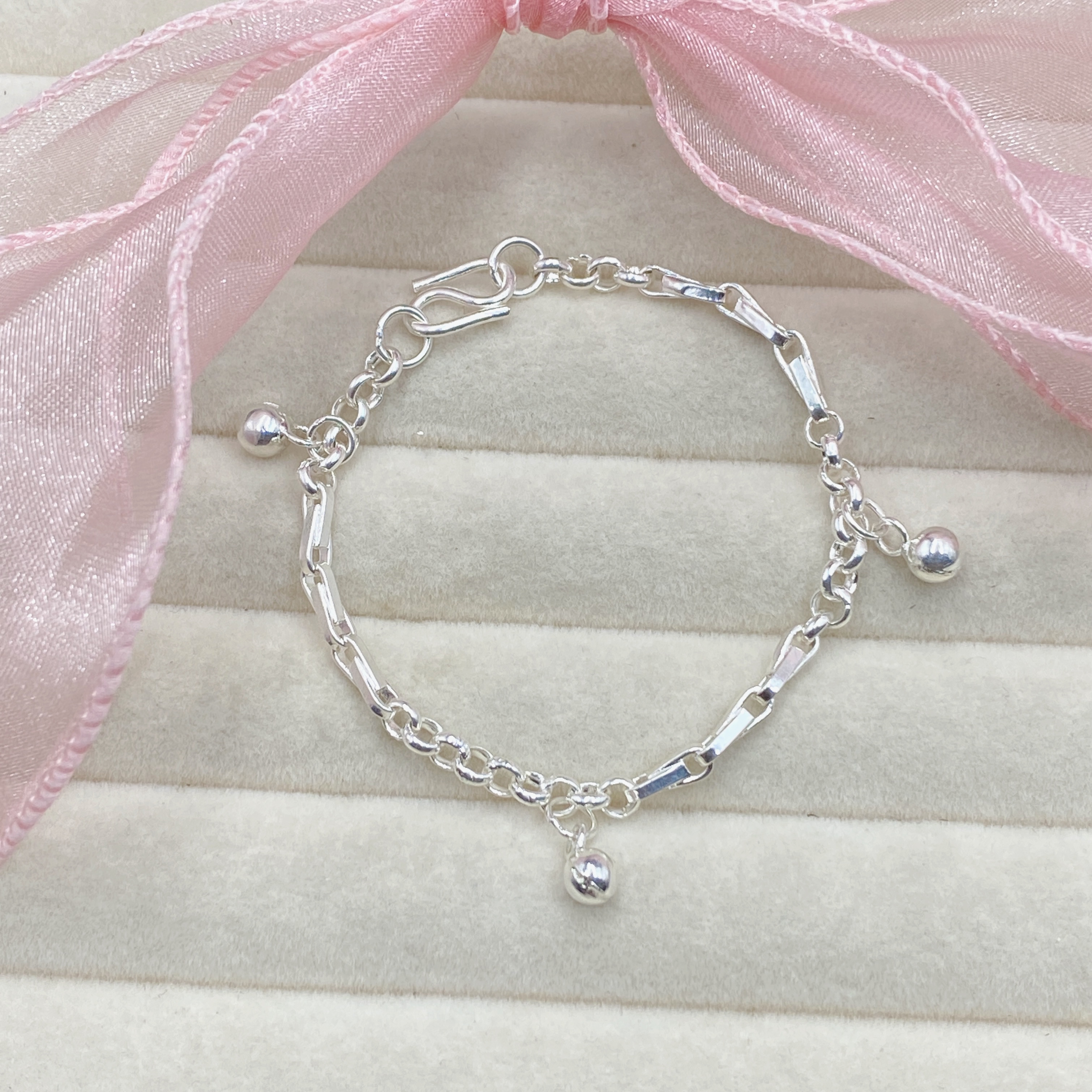 Lắc tay bạc cho bé - lắc bi phay treo charm - Bạc Nhỏ Store