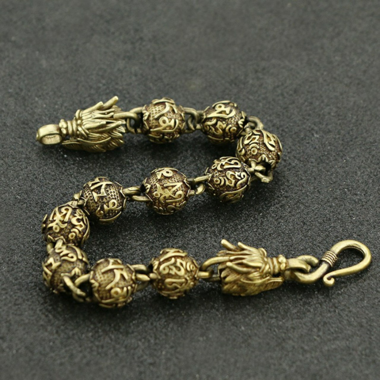 ✨LẮC TAY NAM ĐẦU RỒNG KHẮC OM MANI PADME HUM BẰNG ĐỒNG