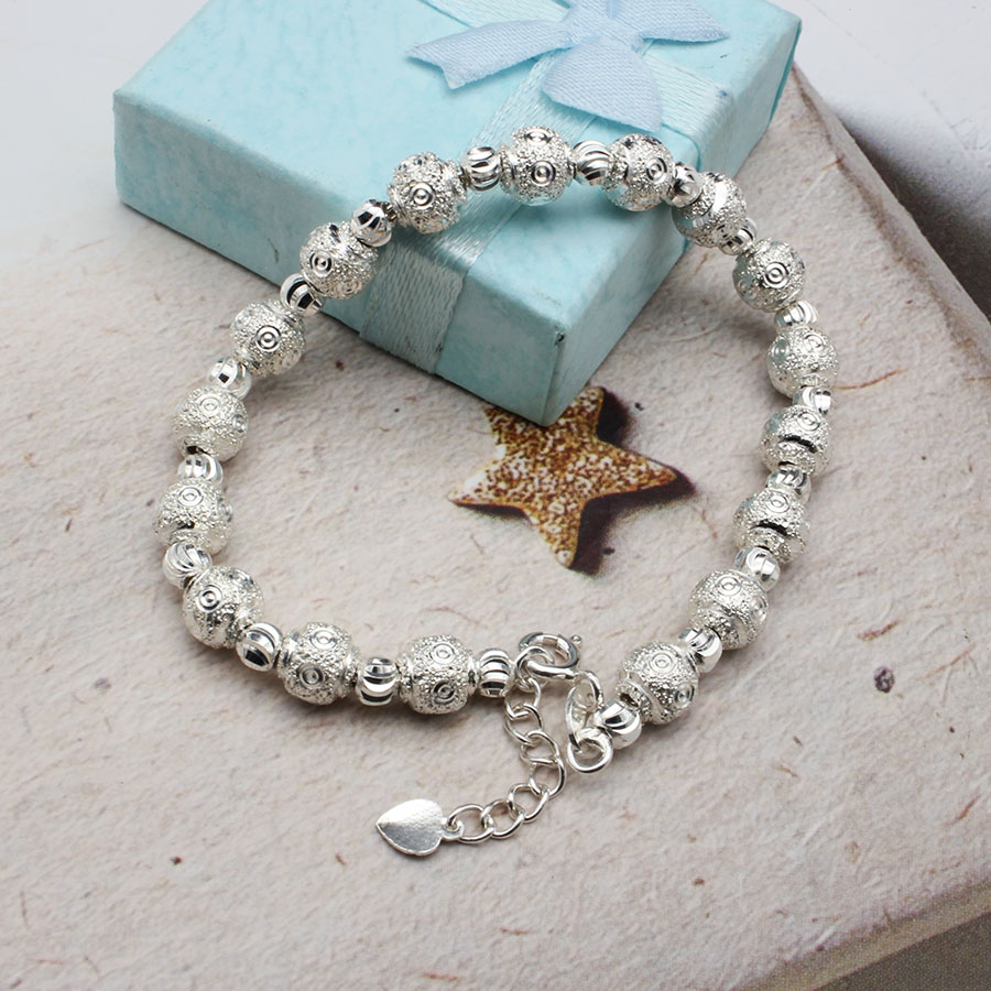 Là con gái, hẳn bạn luôn bị cuốn hút trước những bộ cánh thời trang và những đôi giày sành điệu. Tuy nhiên để làm hoàn hảo hình ảnh của mình trong mắt người đối diện, các bạn cần thêm những món phụ kiện bé bé xinh xinh để điểm tô cho vẻ ngoài thêm ấn tượng. Và hôm nay, S sẽ mang đến các bạn cơ hội sở hữu chiếc lắc tay rất dễ thương, được làm bằng bạc ta. Sản phẩm thích hợp với những bạn gái có phong cách dịu dàng, nữ tính.