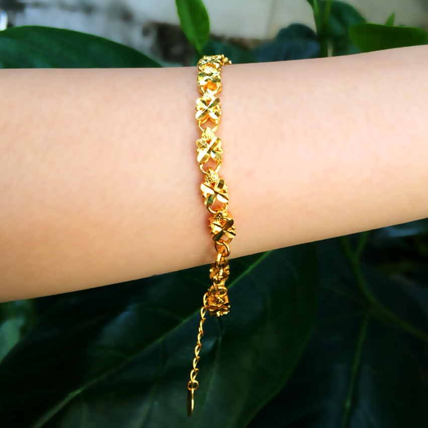 Lắc đeo tay nữ được thiết kế tỉ mỉ, tinh xảo với những họa tiết cỏ 4 lá kết hợp với những hình trái tim nhỏ cách đều nhau, mang đến vẻ đẹp dịu dàng không kém phần cuốn hút cho người đeo. Thiết kế khóa chữ S chắc chắn với nhiều nấc tròn khác nhau, phù hợp với nhiều kích cỡ tay.