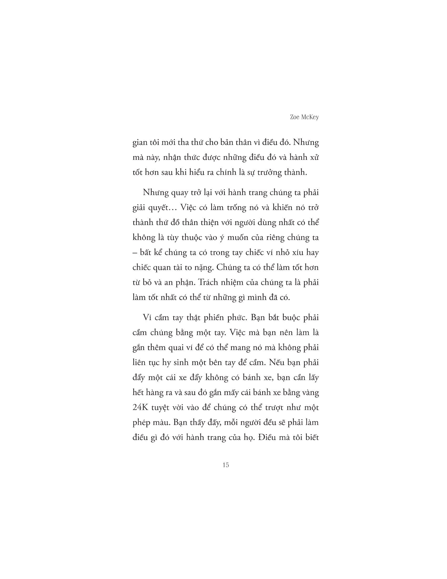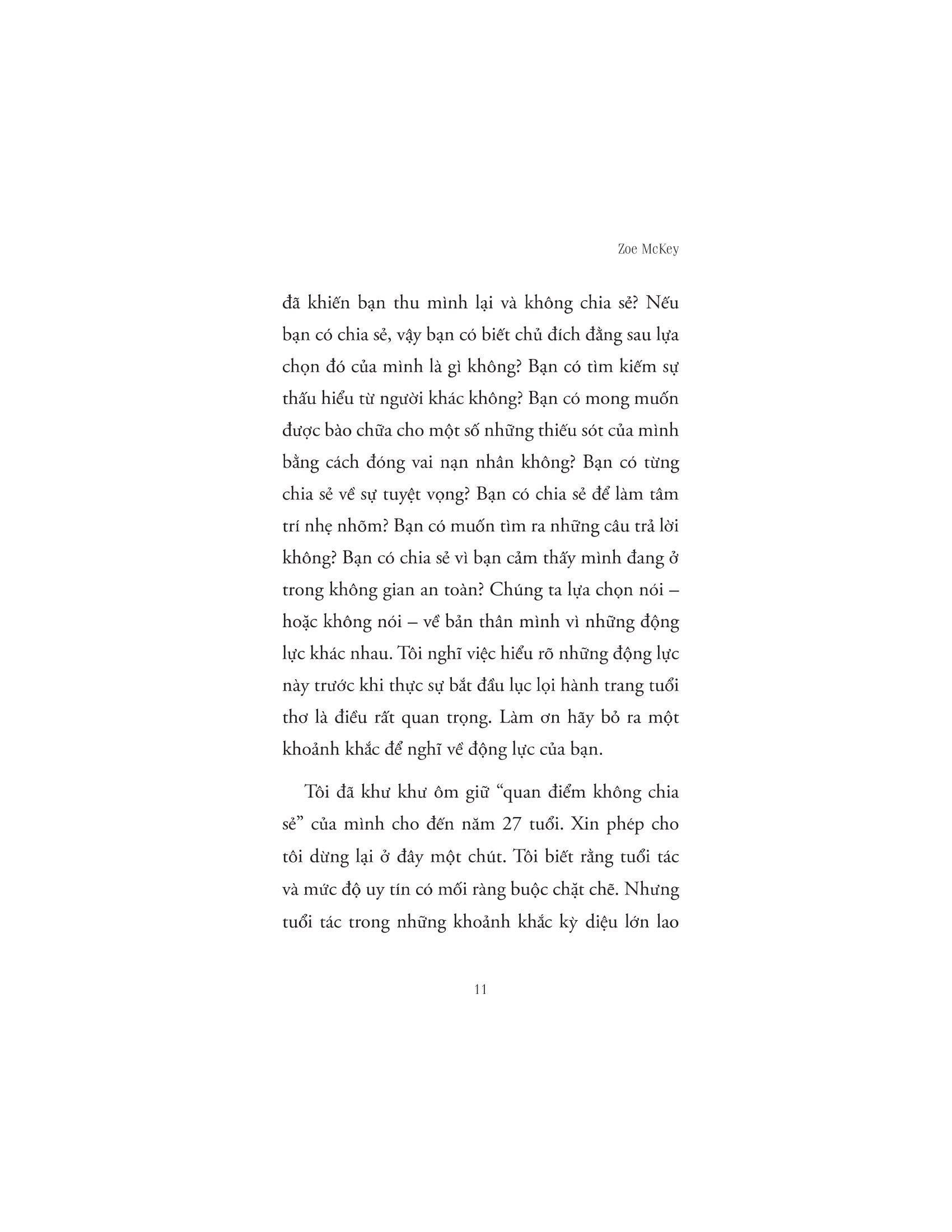 Lắng Nghe Đứa Trẻ Bên Trong Thấu hiểu cảm xúc để yêu thương, chữa lành tổn thương để hạnh phúc Sự trưởng thành không phải là một điểm đến mà là một hành trình. Hành trình khám phá bản thân, nhìn nhận những gì bạn làm và cảm nhận. Sự trưởng thành là quá trình bạn tìm kiếm ý nghĩa cho cuộc sống của m.ình những giá trị và mục tiêu quan trọng. Bạn biết cách cân bằng giữa công việc và cuộc sống, giữa việc chăm sóc bản thân và quan tâm đến người khác. Bạn biết cách yêu thương và được yêu thương. Từ đó có thể tạo ra những mối quan hệ chân thành và bền vững. Tuy vậy, trưởng thành luôn đi kèm những đánh đổi và tổn thương, cho dù chúng ta đã cố gắng phớt lờ hay lãng quên thì đứa trẻ ở nơi sâu thẳm tâm hồn vẫn sẽ ghi nhớ kĩ lưỡng từng chút một. Và những tổn thương ấy đều không có vết sẹo nào chảy máu cả. Dẫu vậy nó vẫn đề lại trong tâm trí mỗi người một nét vẽ nghệch ngoạc. Cuốn sách “Lắng nghe đứa trẻ bên trong bạn” sẽ giúp bạn thấu hiểu cảm xúc, quay về với chính m.ình để yêu thương và chữa lành. Cuốn sách nhấn mạnh giá trị thực sự của bản thân bạn, học hỏi những kỹ năng để trở nên tự tin, cải thiện các mối quan hệ và cởi bỏ sự non nớt về mặc cảm xúc. Cuộc đời này là của bạn, vì thế đừng cầm bản đồ của người khác để dò đường đi của m.ình. Bạn có quyền quyết định cách bạn muốn sống. Hãy tìm ra sự can đảm của m.ình. Hãy sống một cách đích thực. Hãy bảo vệ bản thân và những gì quan trọng với bạn. Hãy phá kén, tỏa sáng theo cách riêng của m.ình. Khi chúng ta hành động dựa trên tiền đề của nhận thức và hành động dựa trên những giá trị tốt nhất của bản thân mình (thay vì nỗi sợ hãi, lo lắng và thiếu sót), chúng ta sẽ làm chủ vận mệnh của mình. Bởi chúng ta có quyền kiểm soát nó. Về tác giả: Zoe McKey là tác giả bán chạy nhất trên Amazon cũng đồng thời là một nhà khai vấn giao tiếp, lối sống. Cô được hàng triệu độc giả săn đón nhờ những tư duy và nghệ thuật giao tiếp, bí quyết phát triển bản thân tuyệt vời đã được cô chia sẻ thông qua những cuốn sách của m.ình và qua blog cá nhân. Trong thời gian vài năm trở lại đây, Zoe McKey bắt đầu viết lách, tập trung cho tình yêu cuộc sống và chia sẻ nó lại qua những cuốn sách. Những diễn giải của Zoe McKey trong sách sẽ giúp bạn đọc tìm ra được lý do để họ sống theo cách của riêng m.ình, luôn có một lời giải thích cho hành vi của bạn mà chính bạn cũng không nhận ra. Đọc sách Zoe McKey sẽ giúp bạn khai phá trí óc và hành động theo một cách mới để không ngừng tốt hơn trong cuộc sống.