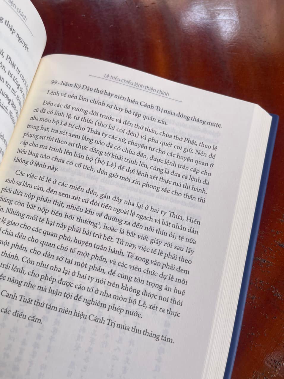 Cuốn sách ghi chép các chiếu lệnh ban hành trong thời gian 1619-1705, phân loại làm 7 quyển theo thẩm quyền của 6 bộ đương thời, trong mỗi quyển trình bày theo thứ tự niên hiệu của các triều vua: