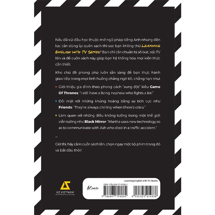 Mua tại TiktokNếu đã vùi đầu học thuộc mớ ngữ pháp tiếng Anh nhưng đến lúc cần dùng lại quên sạch thì sao bạn không thử Learning English With Tv Series - Luyện Nói Thành Thạo Cùng “Mọt” Phim Tiếng Anh Bạn chỉ cần chuẩn bị sổ bút, bật TV lên và để cuốn sách này giúp bạn hệ thống hóa mọi kiến thức cần thiết. 9 bộ phim tương ứng với 9 chủ đề thông dụng luôn sẵn sàng để bạn thực hành giao tiếp dễ dàng trong mọi tình huống ngoài đời thực, chẳng hạn như:
