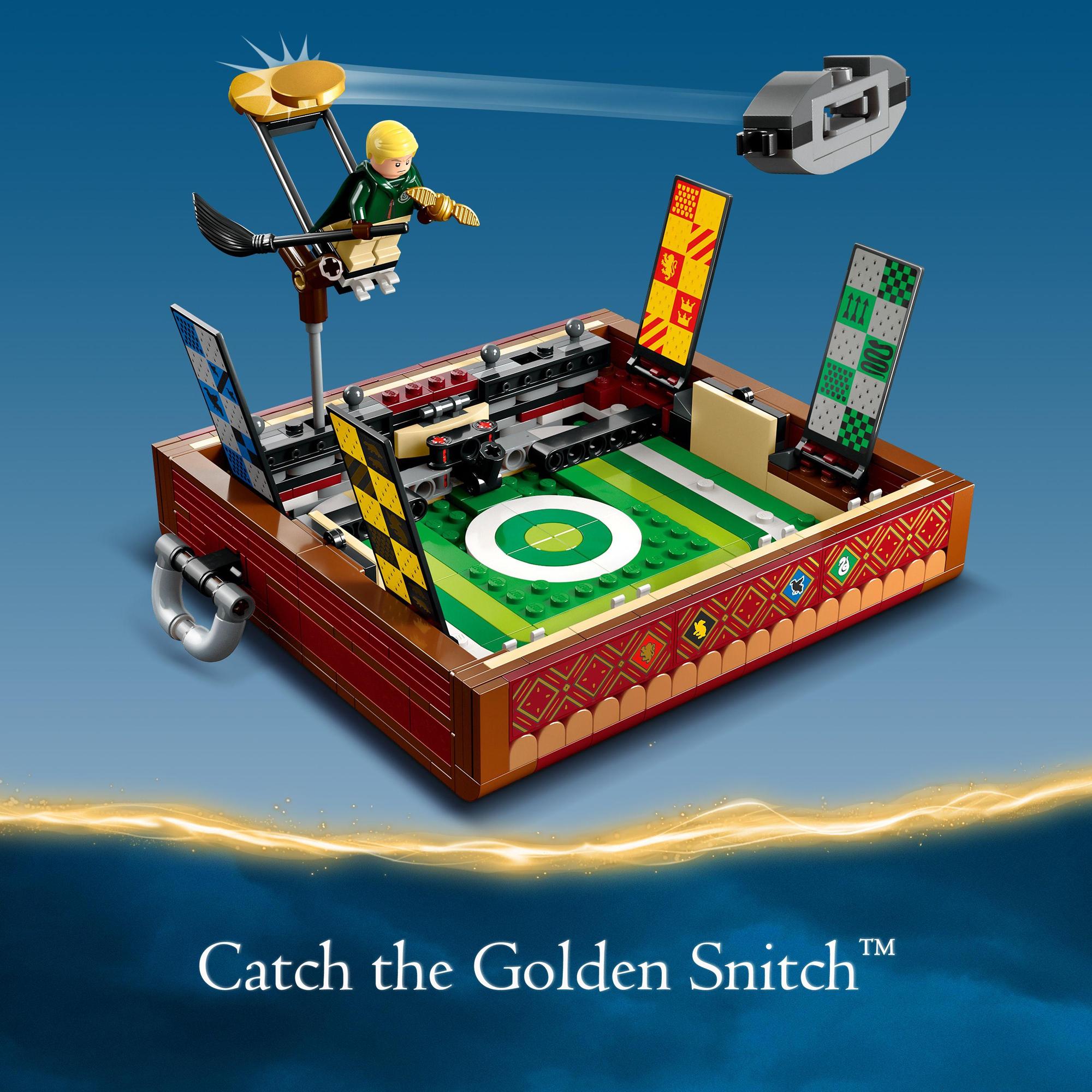 Trẻ em sẽ thích lắp ráp đồ chơi Rương Quidditch LEGO Harry Potter (76416) kỳ diệu này, mở khóa để lộ sân Quidditch, biểu ngữ nhà Hogwarts và mọi thứ cần thiết để chơi trò chơi Quidditch một mình hoặc 2 người chơi. Các nhân vật có thể tùy chỉnh Một món quà tuyệt vời dành cho những người hâm mộ Harry Potter từ 9 tuổi trở lên, bộ này có các nhân vật nhỏ của Harry Potter, Draco Malfoy, Cedric Diggory và Cho Chang, cùng với 10 đầu bổ sung (6 tông màu da khác nhau) và 10 kiểu tóc bổ sung để tạo ra những người chơi độc đáo. Hộp cũng chứa các thiết bị để thiết lập 3 trò chơi Quidditch khác nhau: bắn trái Quaffle qua các vòng khung thành, ném trái bóng vào người đánh và bắt trái Snitch vàng. Khi trò chơi kết thúc và chiếc cúp nhà đã được trao, mọi thứ sẽ được cất vào cốp xe sẵn sàng để trẻ mang theo khi di chuyển. Một cách mới để xây dựng Mang đến cho con bạn một cuộc phiêu lưu xây dựng dễ dàng và trực quan với ứng dụng LEGO Builder. Tại đây, họ có thể phóng to và xoay các mô hình ở chế độ 3D, lưu các bộ và theo dõi tiến trình của chúng.