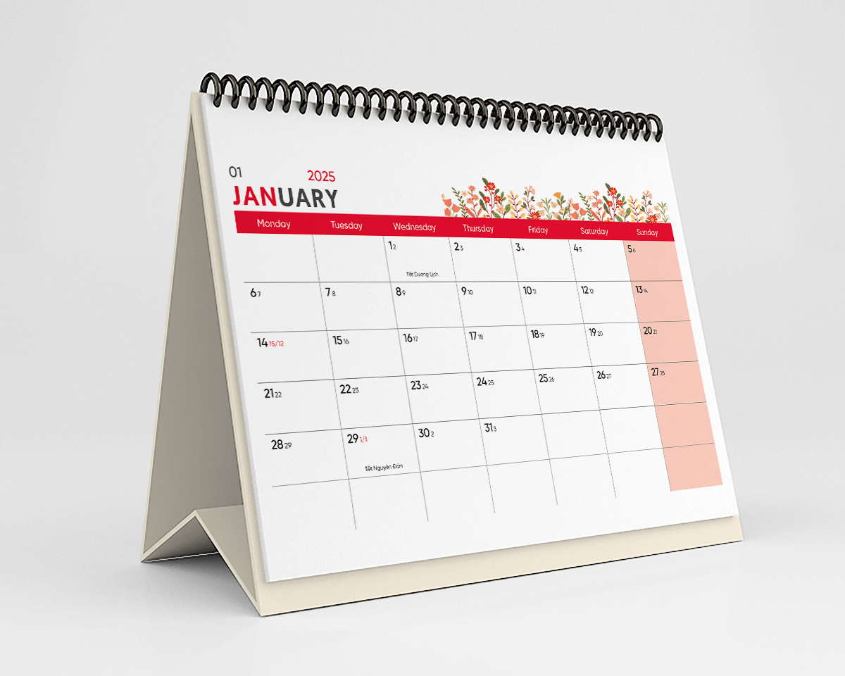 - Kích thước vừa vặn: Với kích thước nhỏ gọn, lịch bàn có thể dễ dàng đặt trên bàn làm việc, bàn học, hoặc trong phòng khách, không chiếm nhiều diện tích mà vẫn nổi bật.