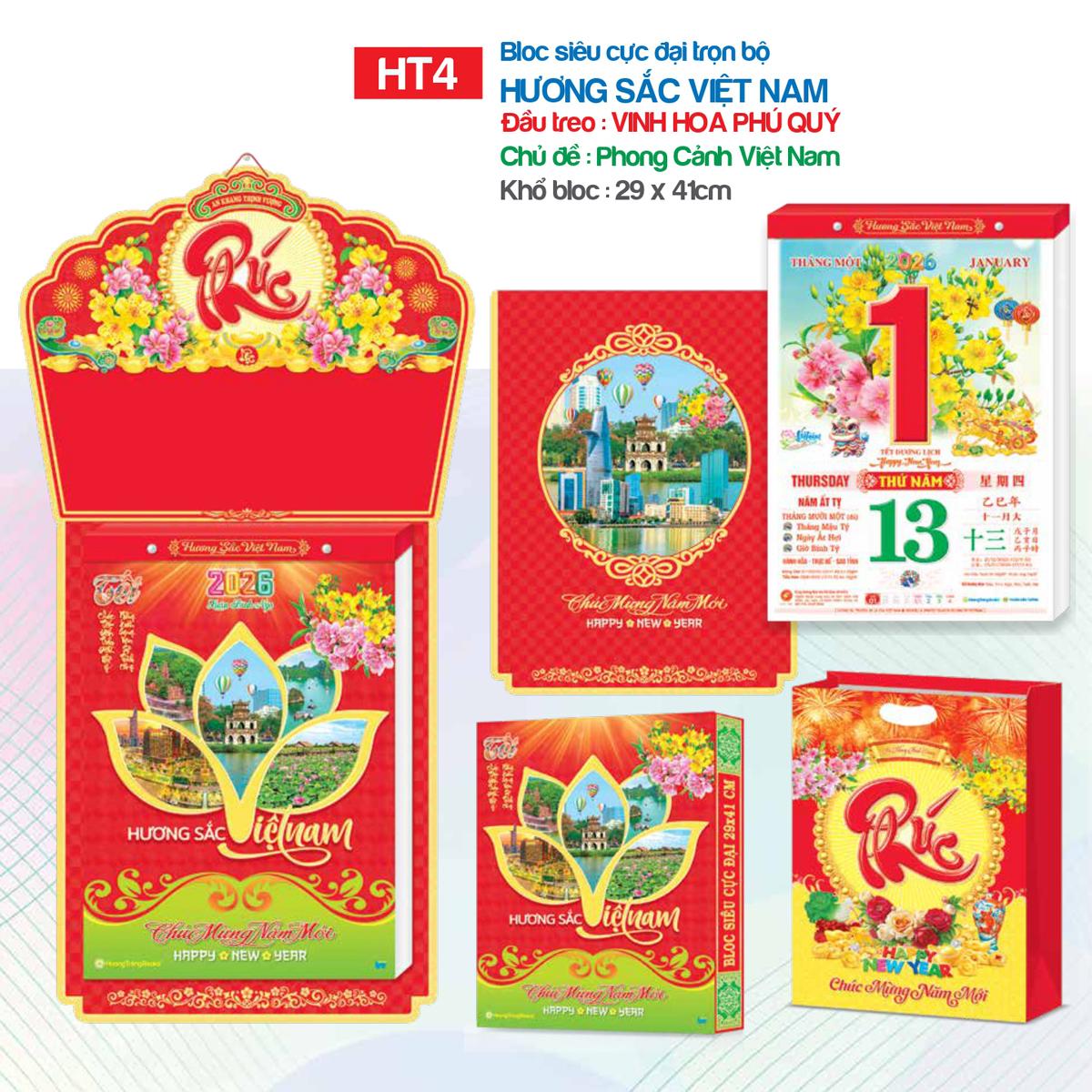 Lịch Bloc Siêu Cực Đại - Chủ Đề Phong Cảnh Việt Nam - Vinh Hoa Phú Quý - Hương Trang HT4 - Để tô điểm Tết cổ truyền Việt Nam, nét đỏ thắm trên những