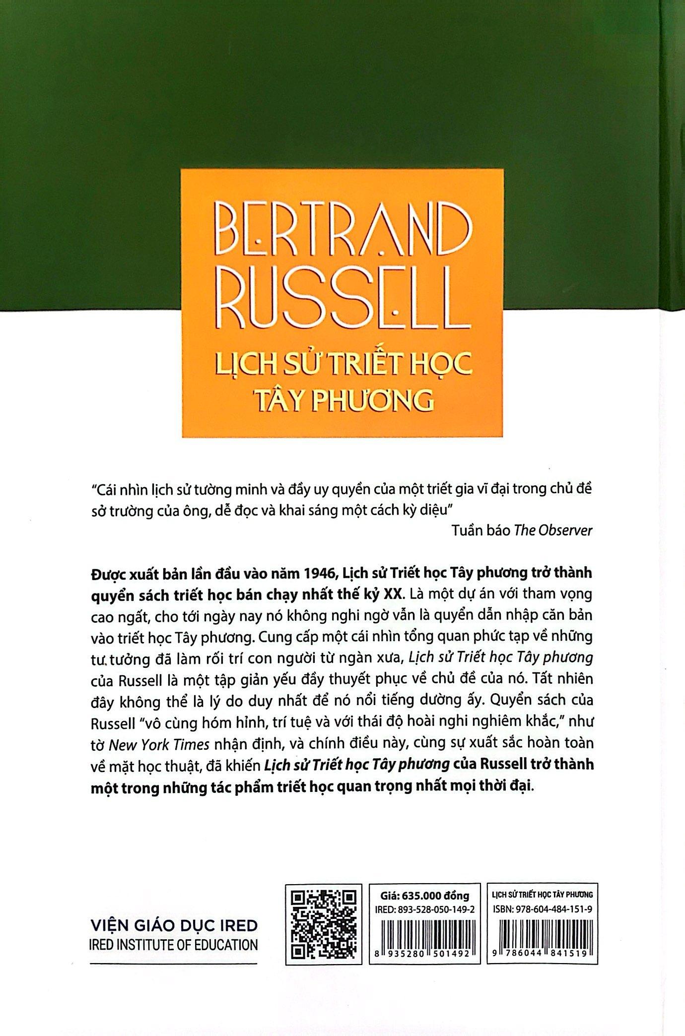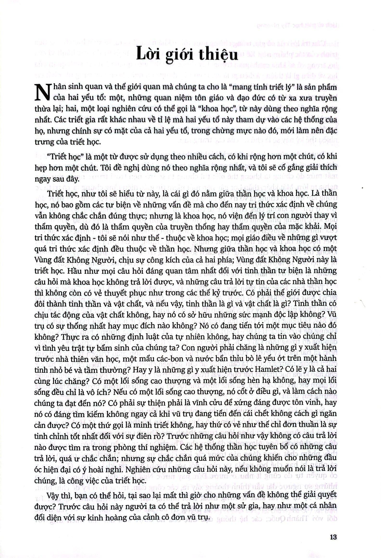 Là một cuốn sách triết học đáng chú ý của Bertrand Russell, được xuất bản lần đầu vào năm 1946 và trở thành quyển sách triết học bán chạy nhất thế kỷ XX. Cuốn sách này mang đến một cái nhìn tổng quan về những tư tưởng triết học đã làm rối trí con người từ ngàn xưa.