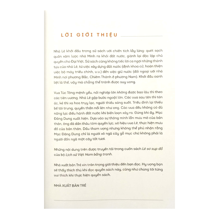 Mua tại TiktokVua Túc Tông mệnh yểu, nối nghiệp lớn không được bao lâu thì theo các tiên vương. Nhà Lê gặp bước ngoặt lớn. Các vua sau tên thì tàn ác, kẻ thì xa hoa trụy lạc, người thiếu sáng suốt. Triều đình lại thiếu bề tôi trung, quyền thần nổi lên như ong. Các vua đều không có đủ năng lực điều hành đất nước khi biến loạn xảy ra. Đúng khi ấy, Mạc Đăng Dung xuất hiện.