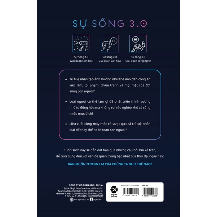 - Không chỉ là một cuốn sách về AI - mà là bản đồ định hình tương lai sự sống Life 3.0 không bó hẹp trong chủ đề trí tuệ nhân tạo. Cuốn sách mở rộng biên độ ra toàn bộ quá trình tiến hóa của sự sống - từ Life 1.0 (sự sống sinh học thuần túy) đến Life 2.0 (con người có văn hóa và tư duy), và hướng tới Life 3.0 – sự sống có thể thiết kế phần cứng và phần mềm của chính mình. Điều đó khiến cuốn sách không chỉ là dành cho dân công nghệ. Nó là cuộc đối thoại nhân loại về cách ta muốn viết nên vận mệnh của mình - trên Trái đất, và có thể là cả trong vũ trụ rộng lớn bao la.
