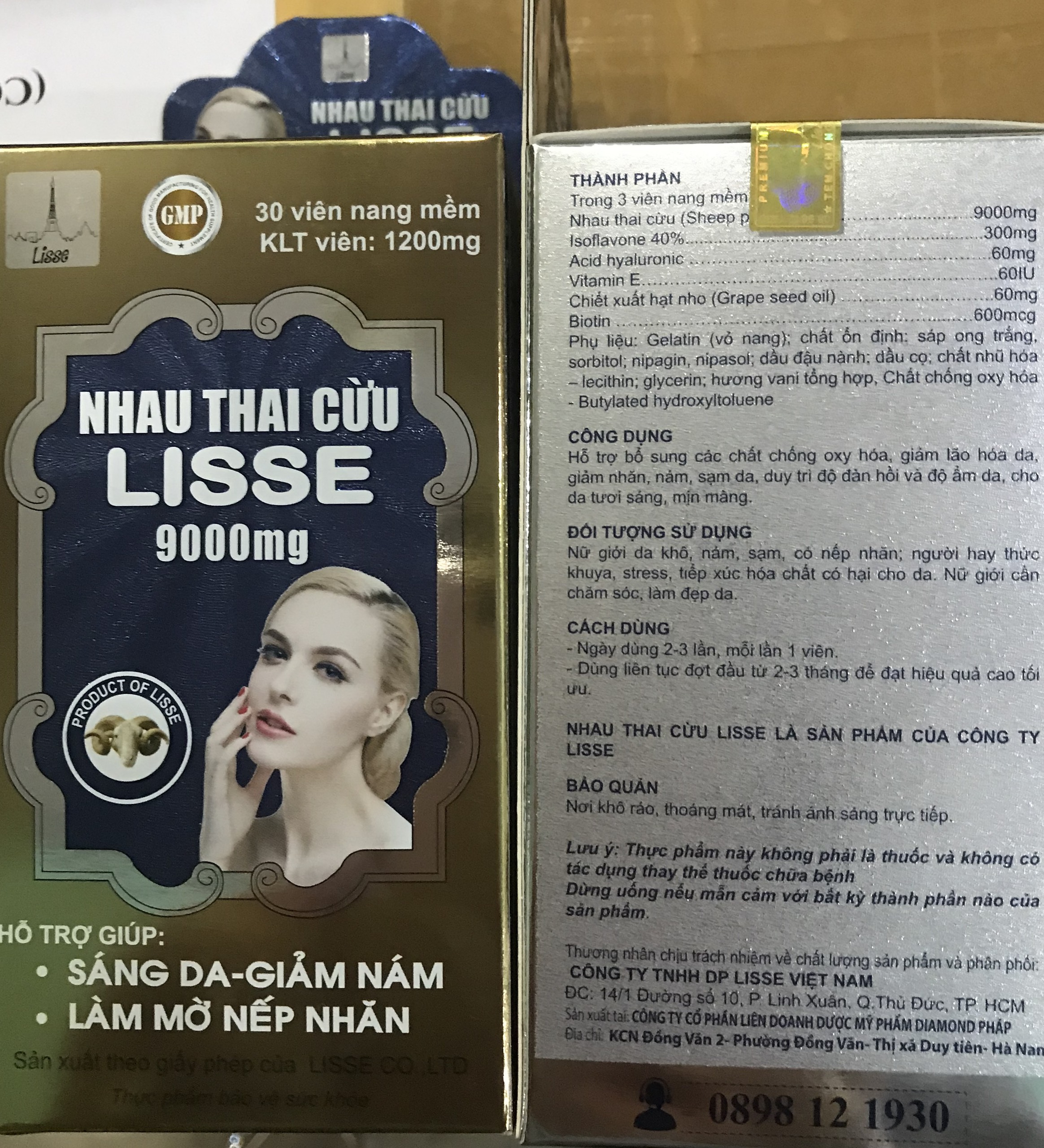 ✨Lisse nhau thai cừu 9000mg - (Hộp 30 viên )- Sáng Da, Mờ Nám , Nếp Nhăn .