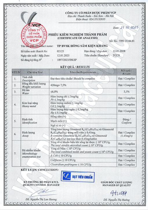 - THÀNH PHẦN Trong mỗi viên nang cứng có chứa: Bột Hồng Sâm (Panax ginseng powder): 100mg cao tương đương thảo mộc khô gồm: Mạch môn (Ophiopogonis japonicus): 660mg Ngũ vị tử (Schisandra chinensis): Hồng sâm (Panax ginseng): 1000mg Phụ liệu vừa đủ 01 viên nang cứng.
