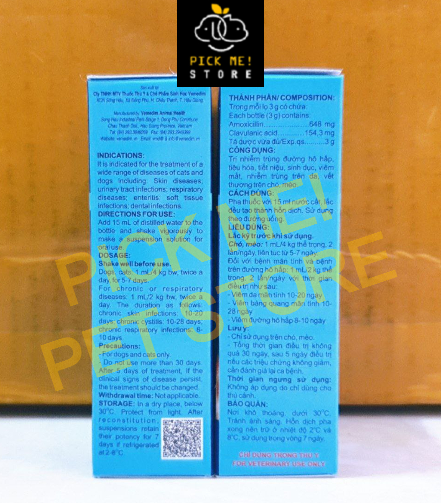 Vemedim pet amox thuốc điều trị bệnh tiêu chảy, ho viêm da khớp tử cung sinh dục cho chó mèo