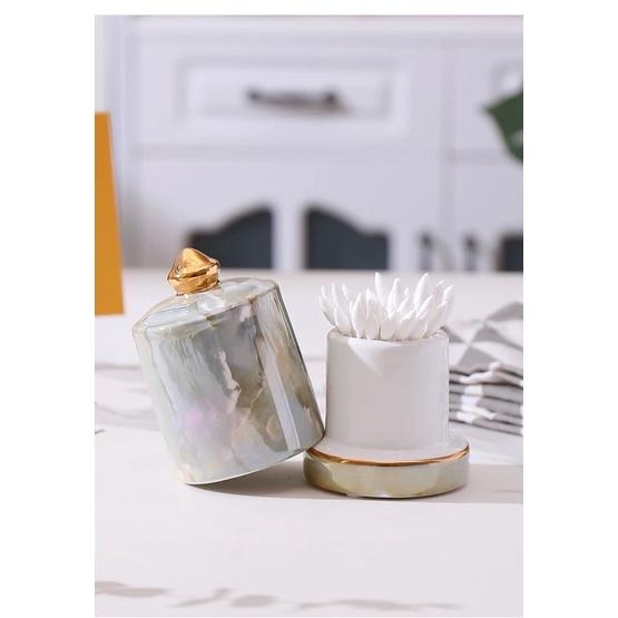 Hũ tăm bằng sứ cao cấp Màu sắc sang trọng Ngoài công dụng chính còn là phụ kiện trang trí trên bàn ăn
