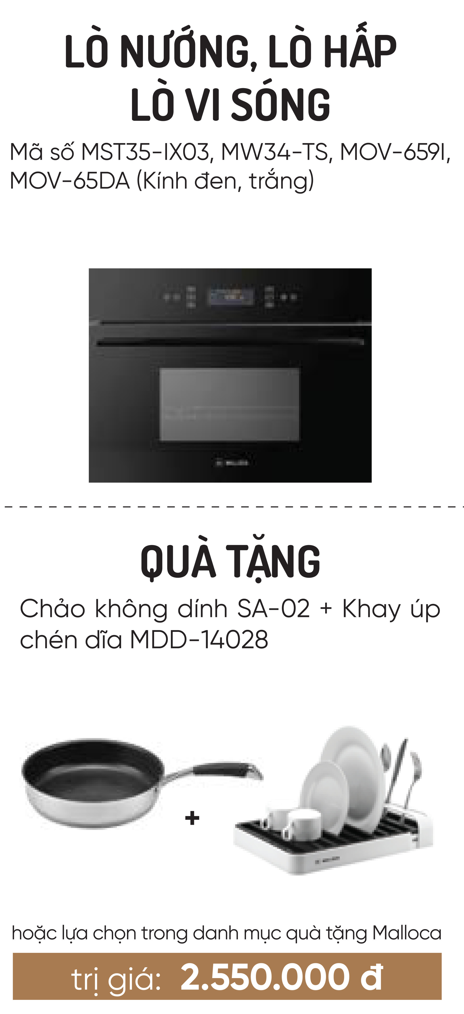 - Malloca là thương hiệu thiết bị nhà bếp cao cấp được đăng ký bảo hộ thương hiệu từ Tây Ban Nha, các thiết kế lò vi sóng, lò hấp Malloca và lò nướng đều mang đặc trưng của phong cách châu Âu hiện đại, tinh tế với các chức năng tiện dụng, thông minh.