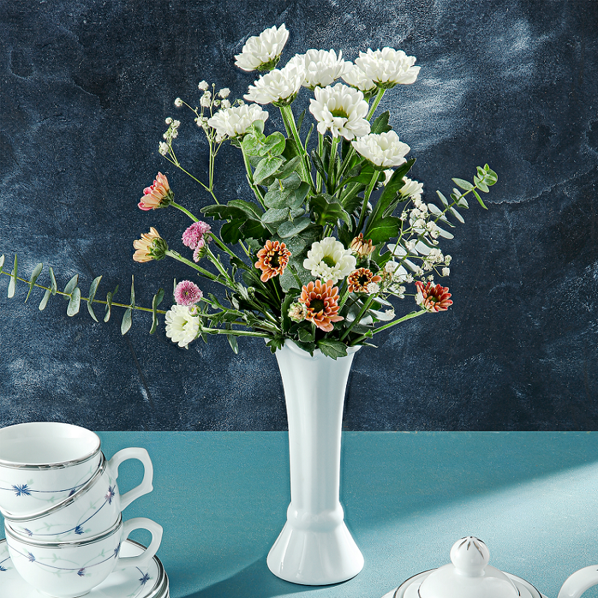 Lọ hoa bô đê sứ trắng có kích thước vừa phải, thiết kế tối giản nhưng mang lại cảm giác sang trọng, thanh cao phù hợp trong mọi không gian dù ở khách sạn, nhà hàng cao cấp hay bàn ăn, phòng khách gia đình.
