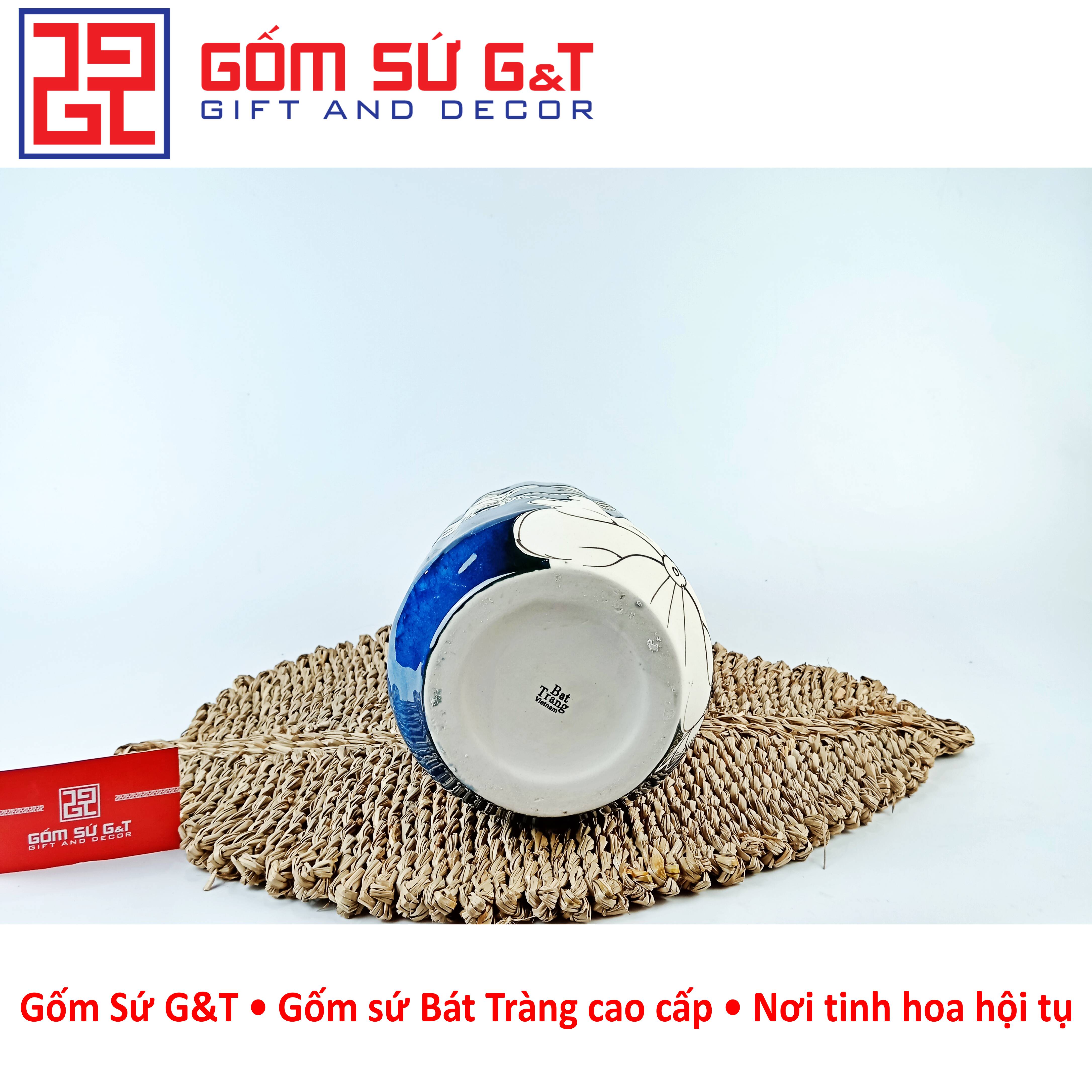 Lọ hoa được vẽ tay với chất liệu gốm sứ Bát Tràng Được vẽ tay tỉ mỉ ,trau chuốt có giá trị không bởi tay nghề của người thợ vẽ gốm mà còn ở con