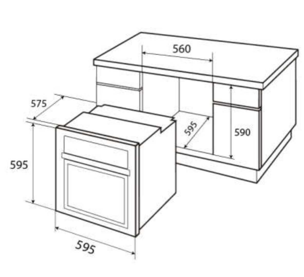 - Kích thước khoét lỗ WxHxD: min.560 max.580 / min.600 / min.555