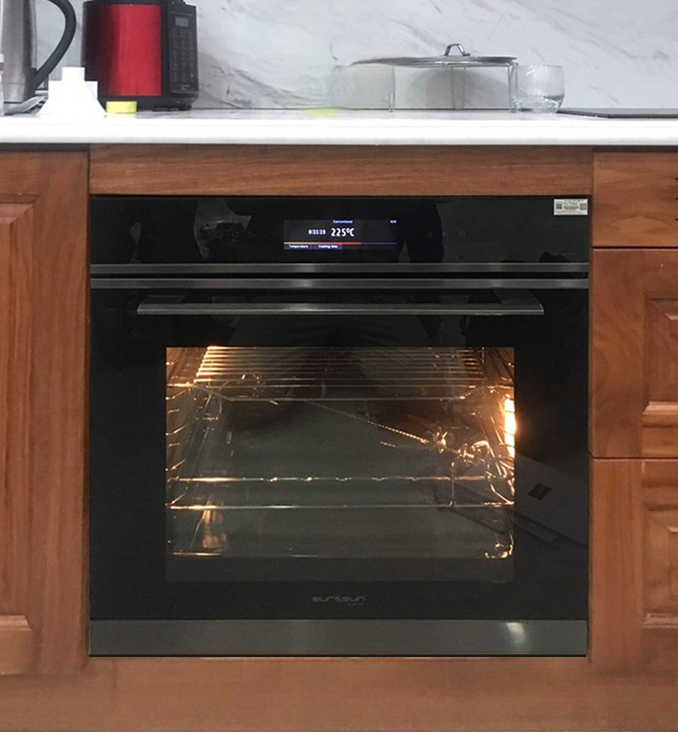 - Điều khiển cảm ứng TFT, Màn hình hiển thị TFT (Thin Film Transistor) với độ sắc nét cao, giúp người dùng dễ dàng quan sát, kiểm soát và điều chỉnh quá trình hoạt động của lò về chế độ nướng, công suất, thời gian…