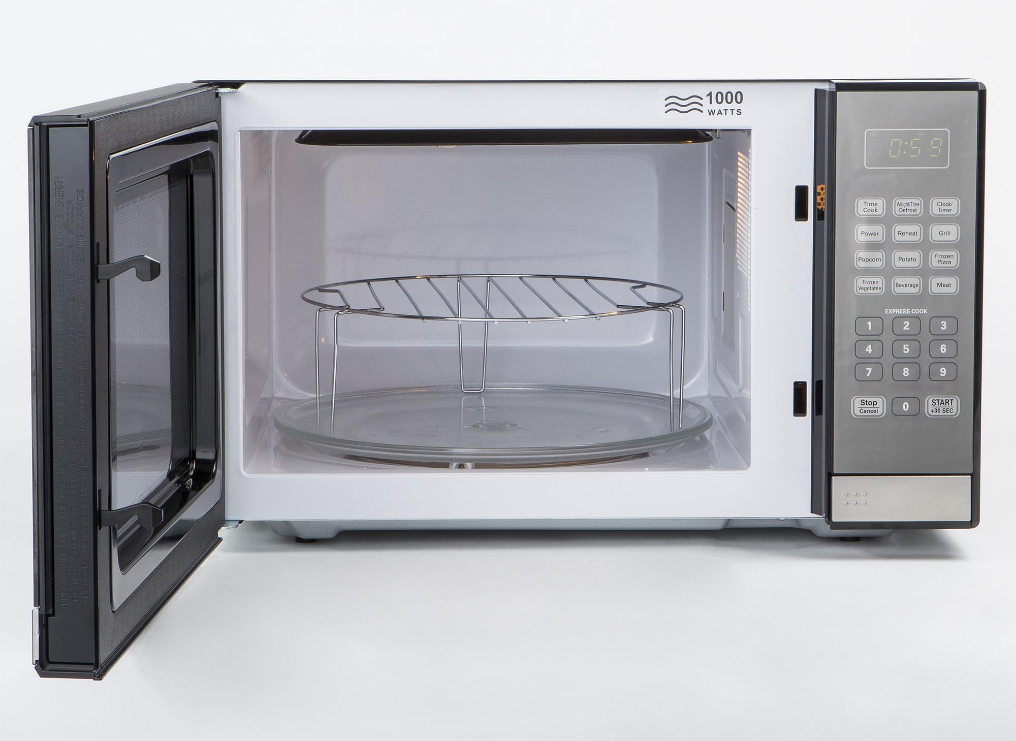 Lò vi sóng dung tích 20 lít, có thể bỏ vừa gà nguyên con 1kg Công suất vi sóng tối đa 1270W, nướng tới 1000W nấu nhanh Lò vi sóng có 4 chức năng chính: