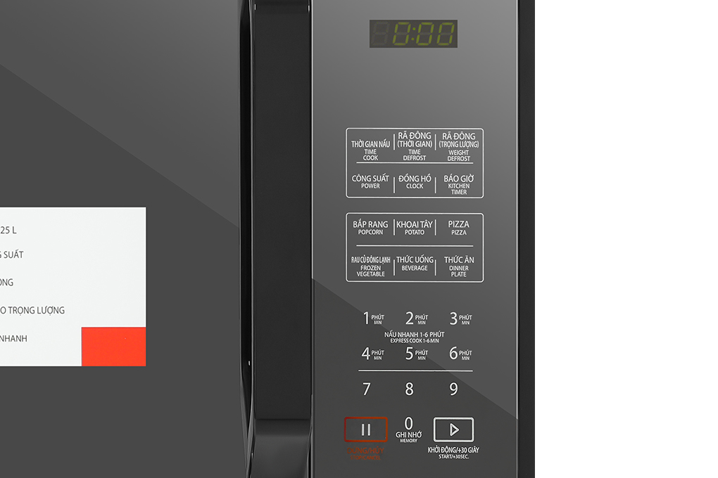 Tiện ích: Chuông báo khi nấu xong, Khóa bảng điều khiển, Hẹn giờ lên tới 99 phút 99 giây, 6 thực đơn cài đặt sẵn, Ghi nhớ quá trình vi sóng, Khoang lò có đèn