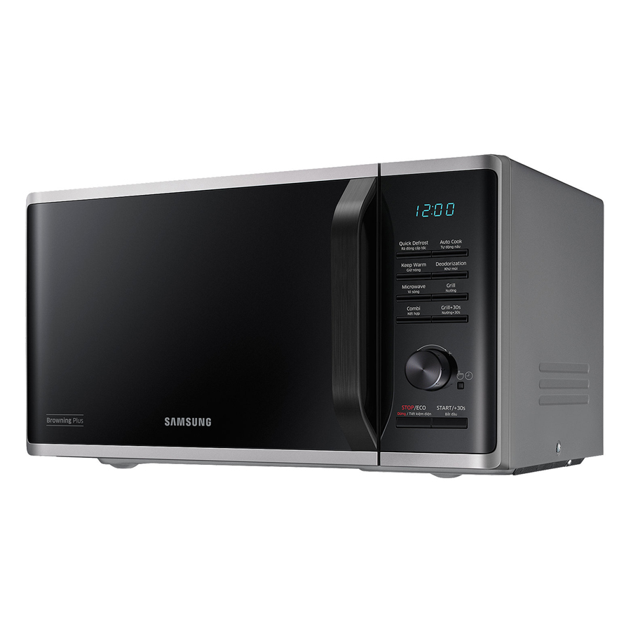Thiết kế hiện đại Lò Vi Sóng Tráng Men Có Nướng Samsung MG23K3515AS/SV (23 lít) có thiết kế sang trọng với tông màu đen xám tinh tế, góp phần tô điểm không gian bếp của
