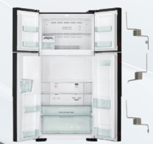 Thay thế lò xo bản lề phụ của cửa tủ lạnh 4 cánh Hitachi.