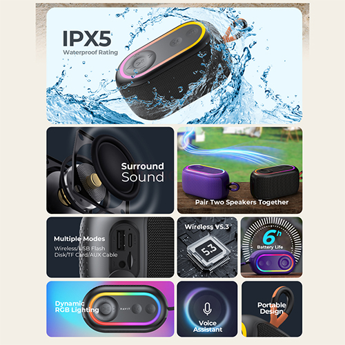Sản phẩm sở hữu thiết kế gọn nhẹ, mang lại cảm giác thoải mái Công suất tối đa lên đến 10W Trang bị đèn RGB đầy màu sắc và màu sắc hiện đại Âm thanh