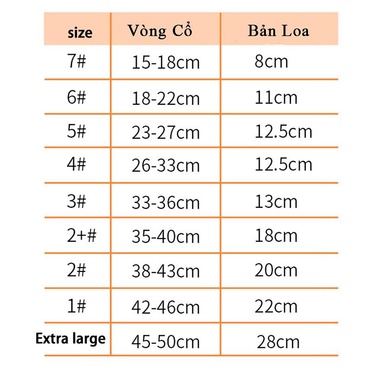 - Số 2 Dành cho cổ 32-39cm Độ rộng 20cm