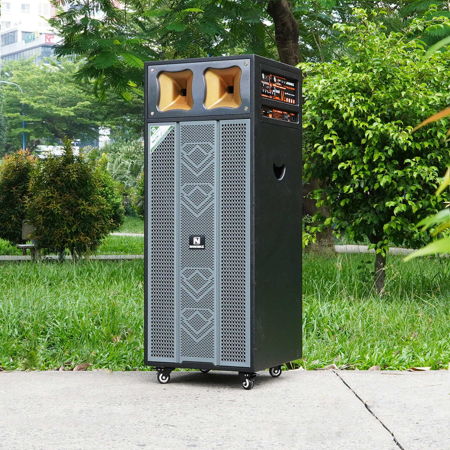 Loa kéo công suất 850W, Kích Thước: 81.5 x 51.5 x 45.2 cm Hỗ trợ kết nối Bluetooth, thẻ SD, USB Tích hợp 2 micro không dây, sóng UHF, thân micro bằng kim loại. chức năng