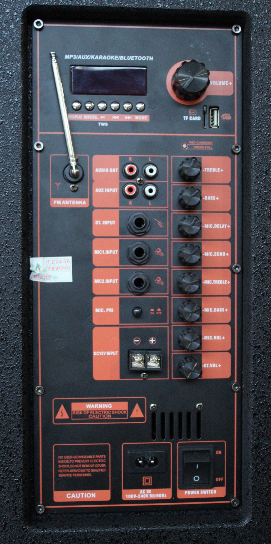 Thiết kế cứng cáp, tông màu mạnh mẽ. Tay nắm chắc chắn kèm bánh xe tiện lợi khi di chuyển. Hỗ trợ nhiều kết nối thông dụng hiện nay như Bluetooth, đài nghe FM, USB, thẻ nhớ, Jack bông sen, Jack Micro, Jack kết nối Guitar Cổng nguồn DC 12V tiếp thêm điện dự phòng khi sử dụng Thời gian nghe nhạc và hát karaoke lâu dài nhờ dung lượng điện ắc-quy lớn Công suất 800W lớn uy lực nhờ có bass 40cm (4 tấc) lớn Thùng gỗ chắc chắn dày dặn Trọng lượng: 28kg Kích thước: 49x49x84 (cm) Remote điều khiển loa từ xa nhanh chóng Tặng kèm 2 micro không dây tiện dụng Thương hiệu: BMD Sản xuất tại: Việt Nam